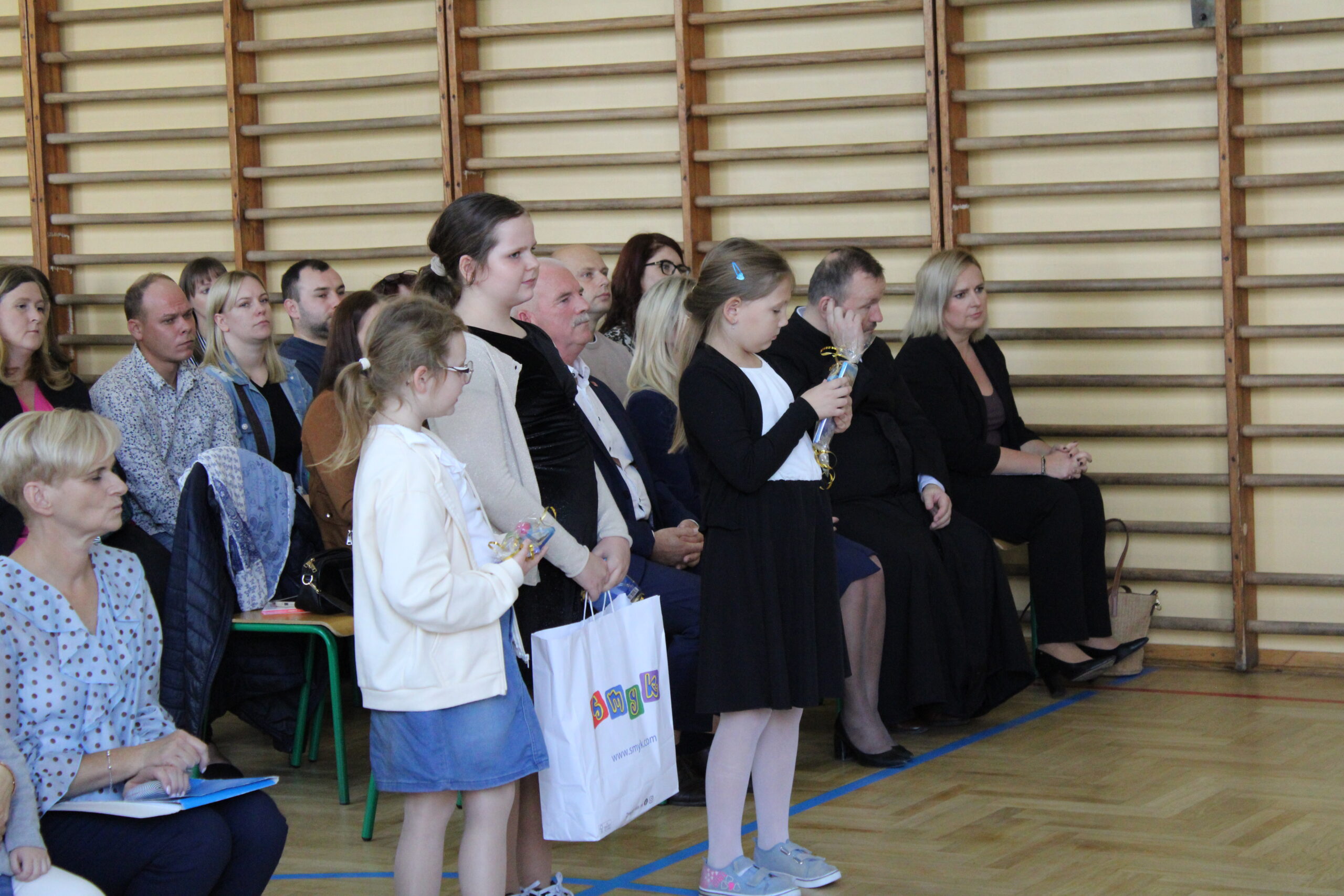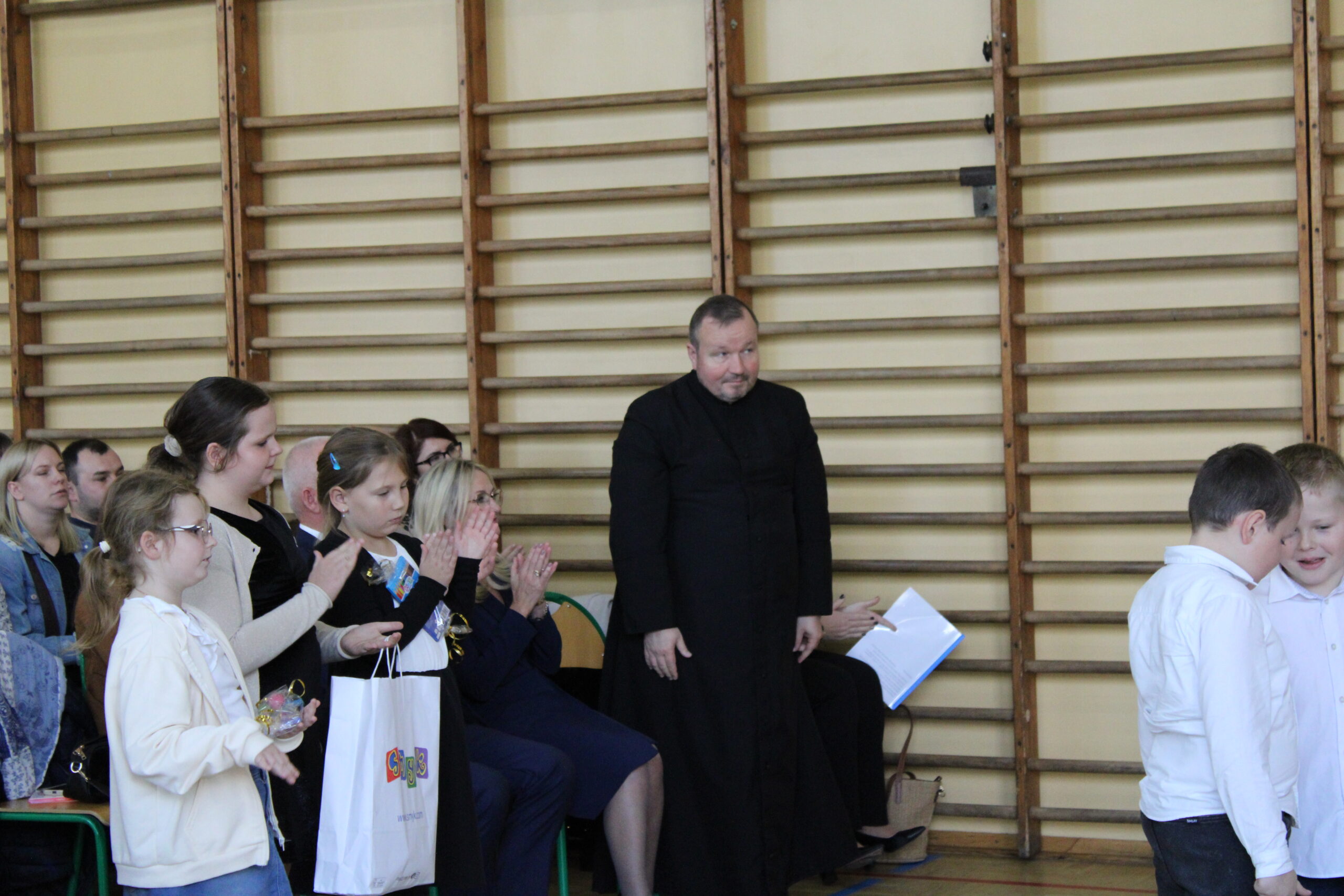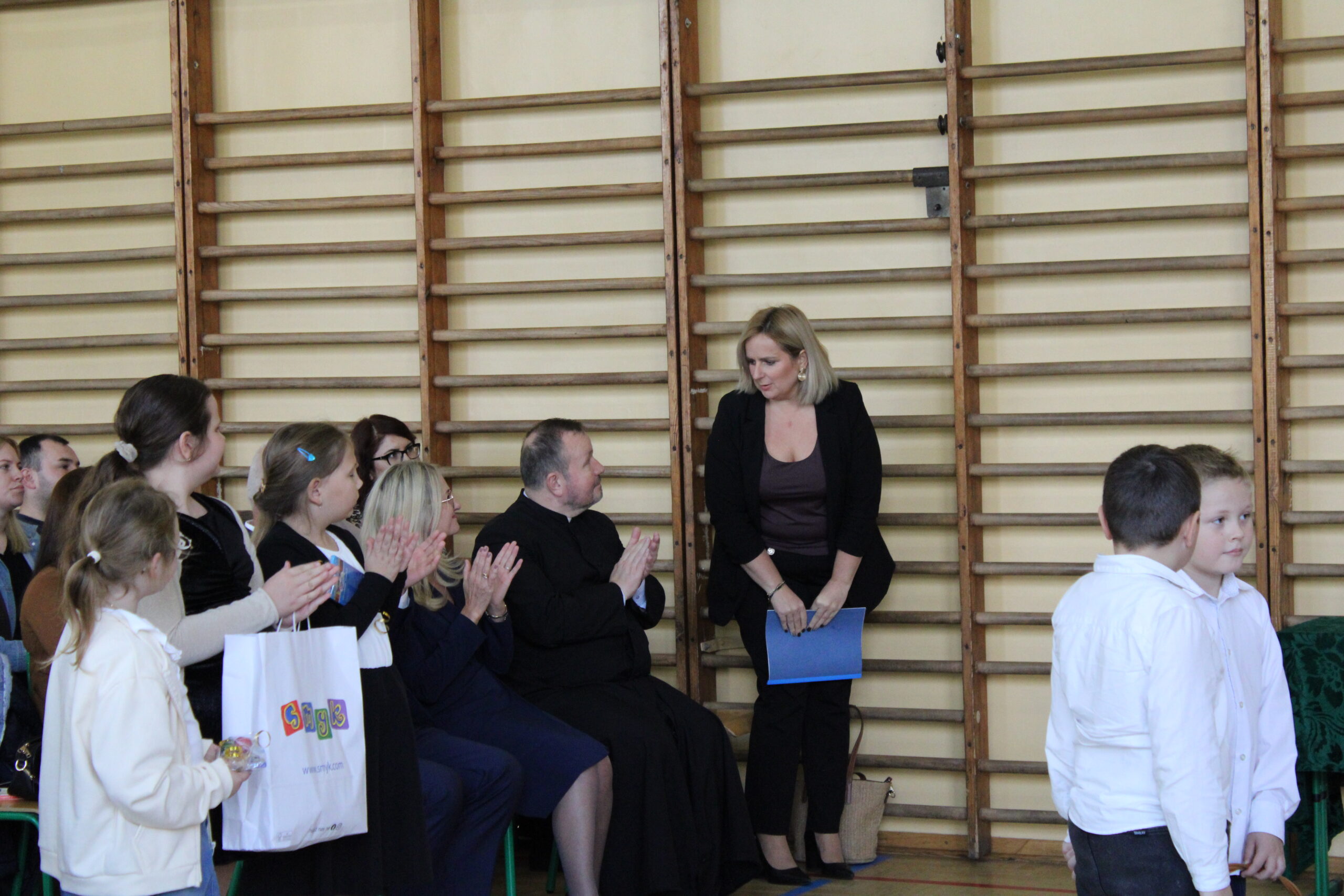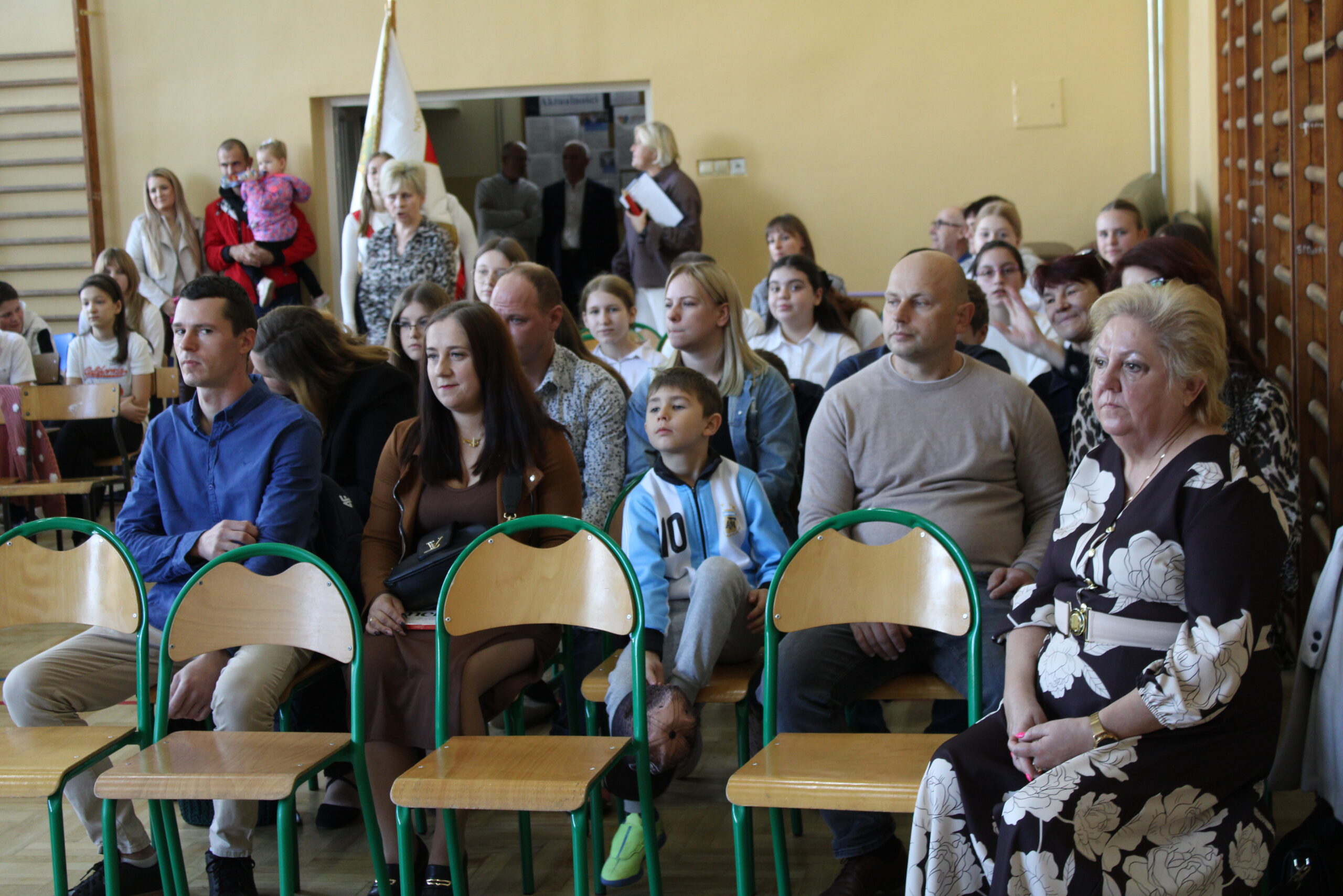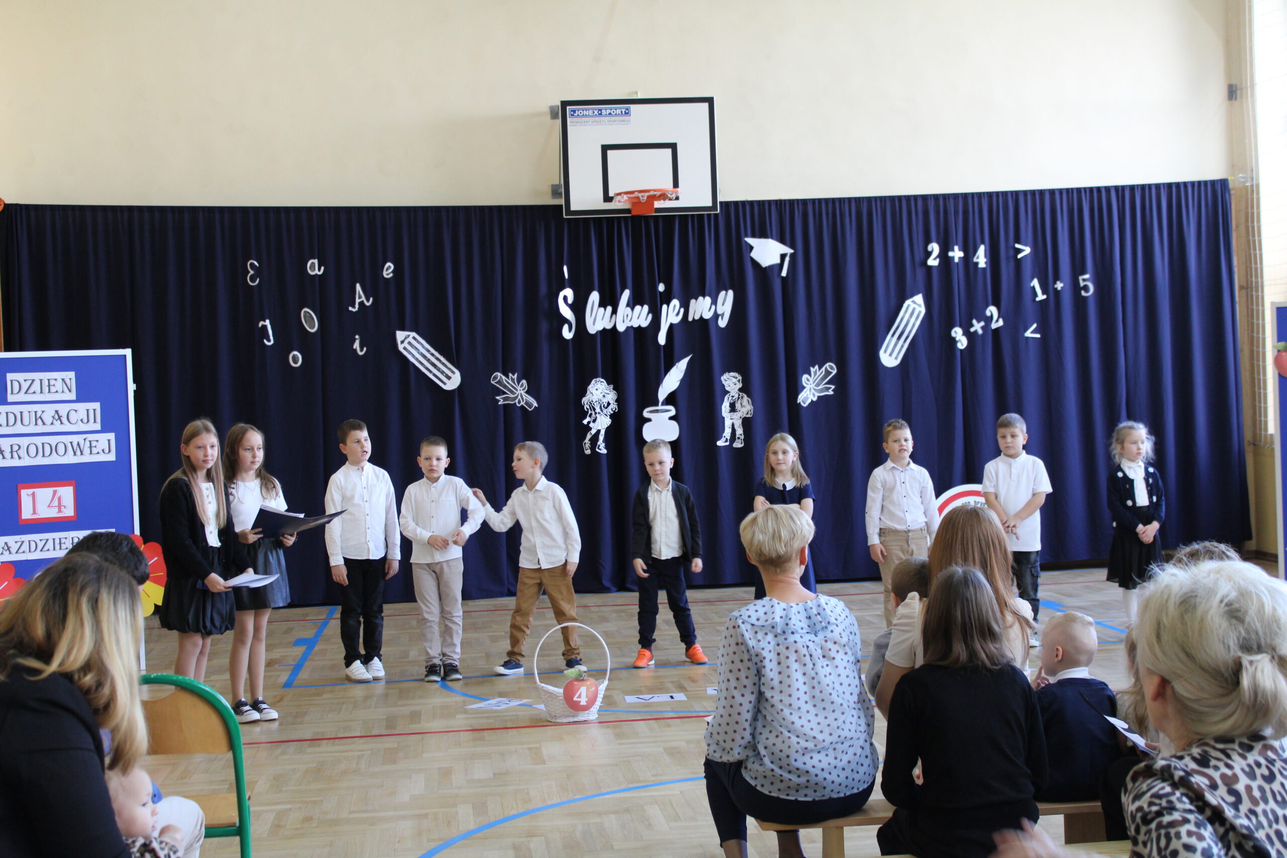 Kolejnym punktem uroczystości było przedstawienie pt.” Pokaz pomocy szkolnych” przygotowane przez uczniów klasy VII, którzy w zabawny sposób zaprezentowali codzienność szkolnego życia. Całość dopełniała oprawa muzyczna – uczniowie starszych klas zaśpiewali piosenkę dedykowaną nauczycielom, po czym przedstawiciele Samorządu Uczniowskiego wręczyli słodki upominek z dedykacją, dziękując za ich pracę i zaangażowanie.