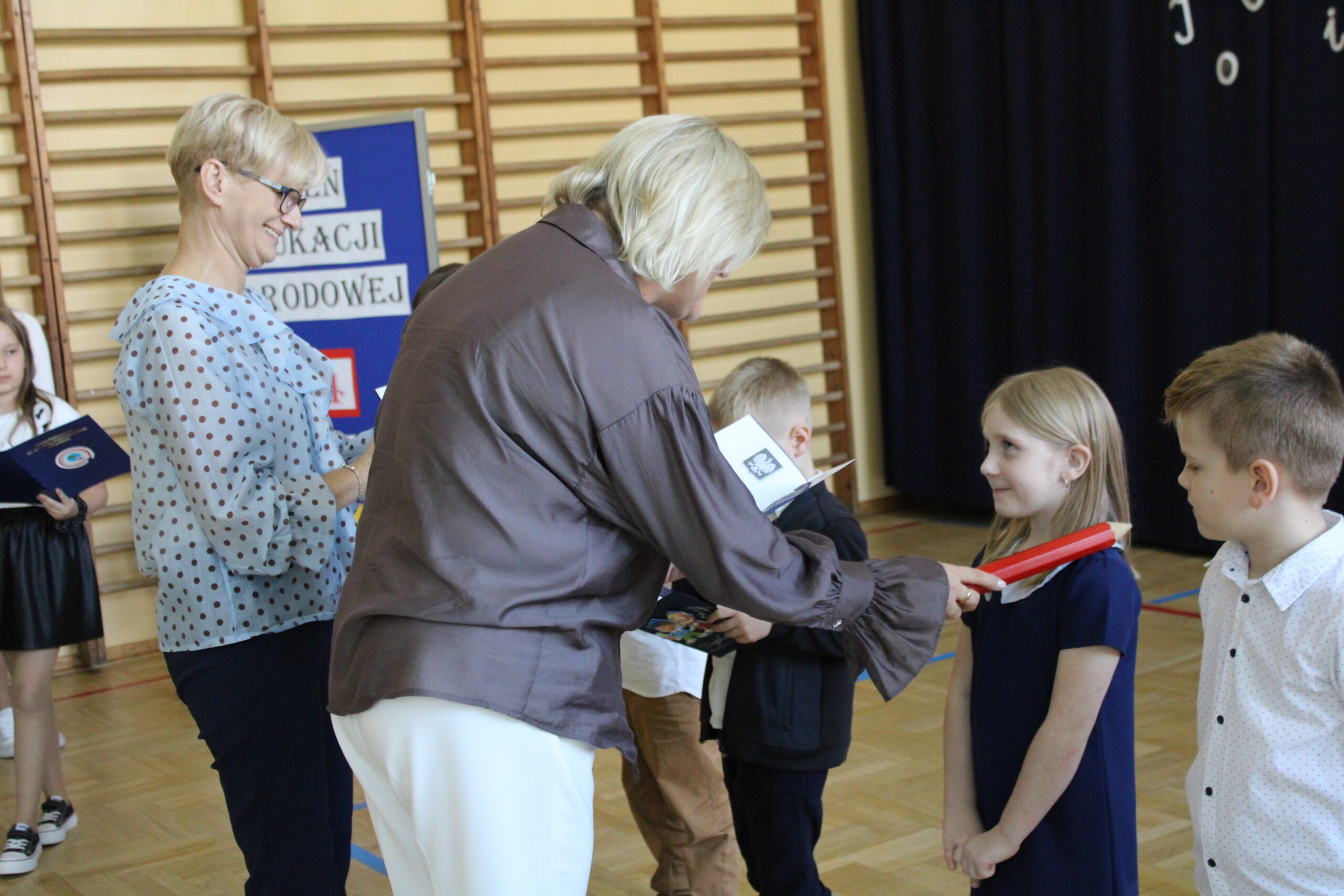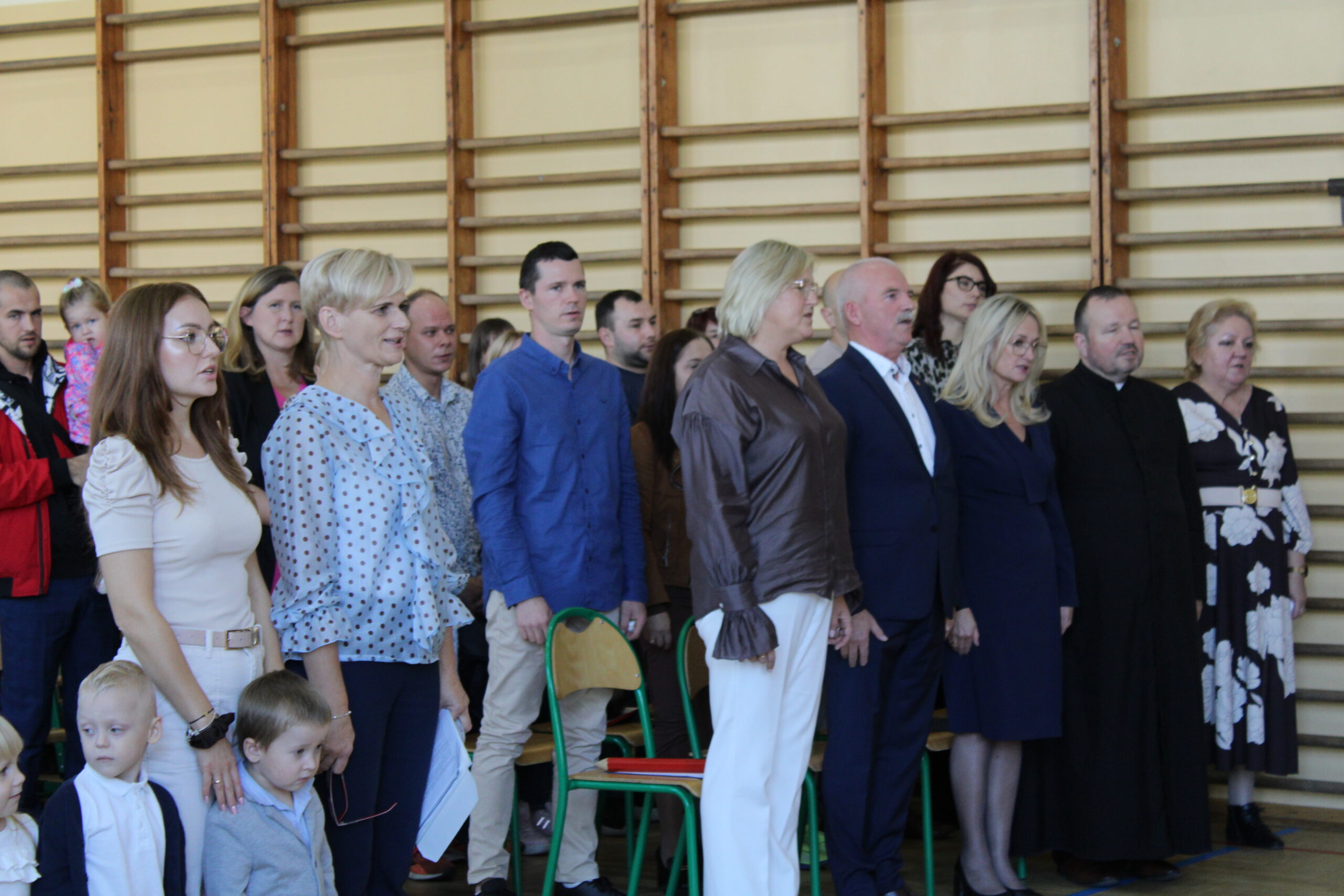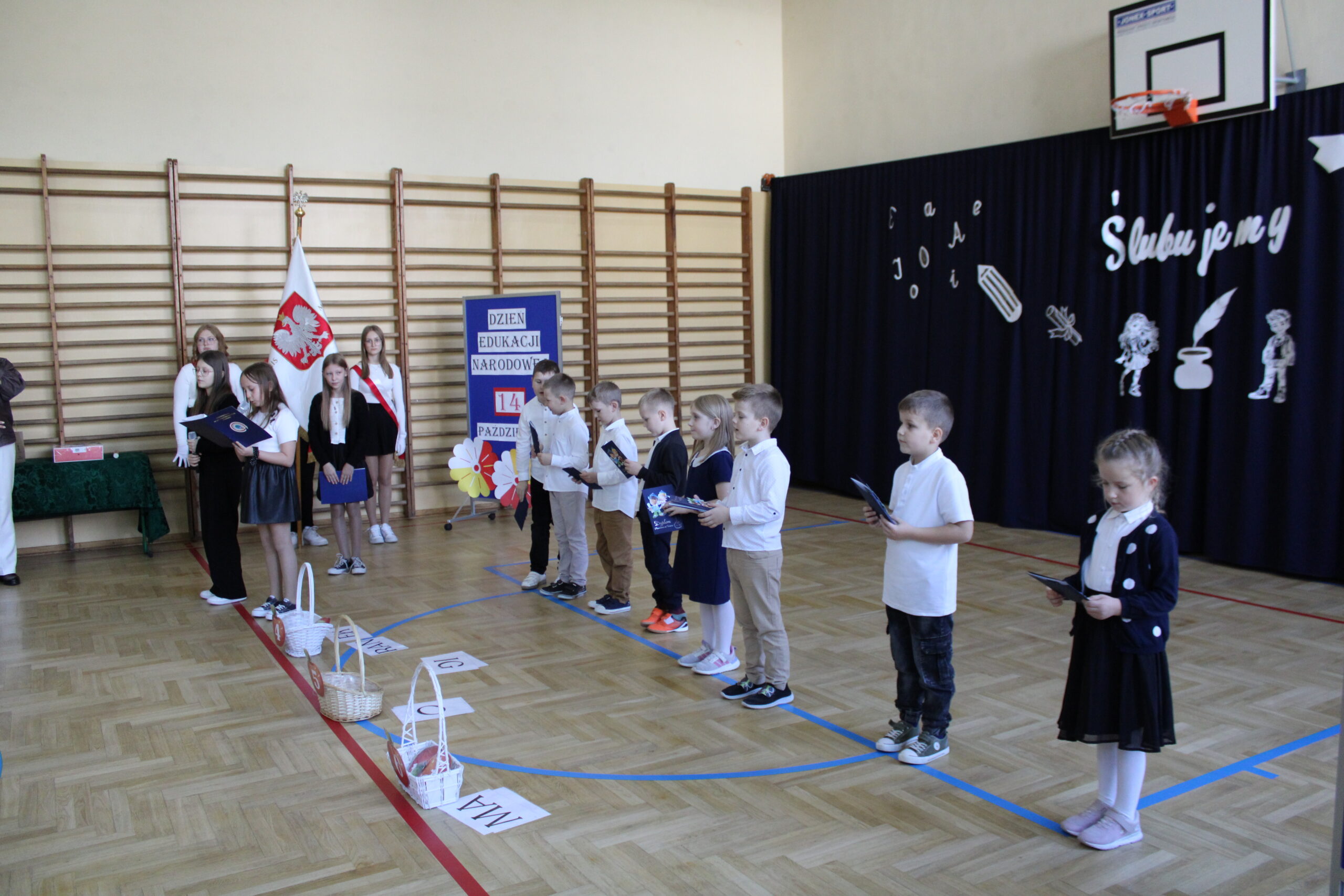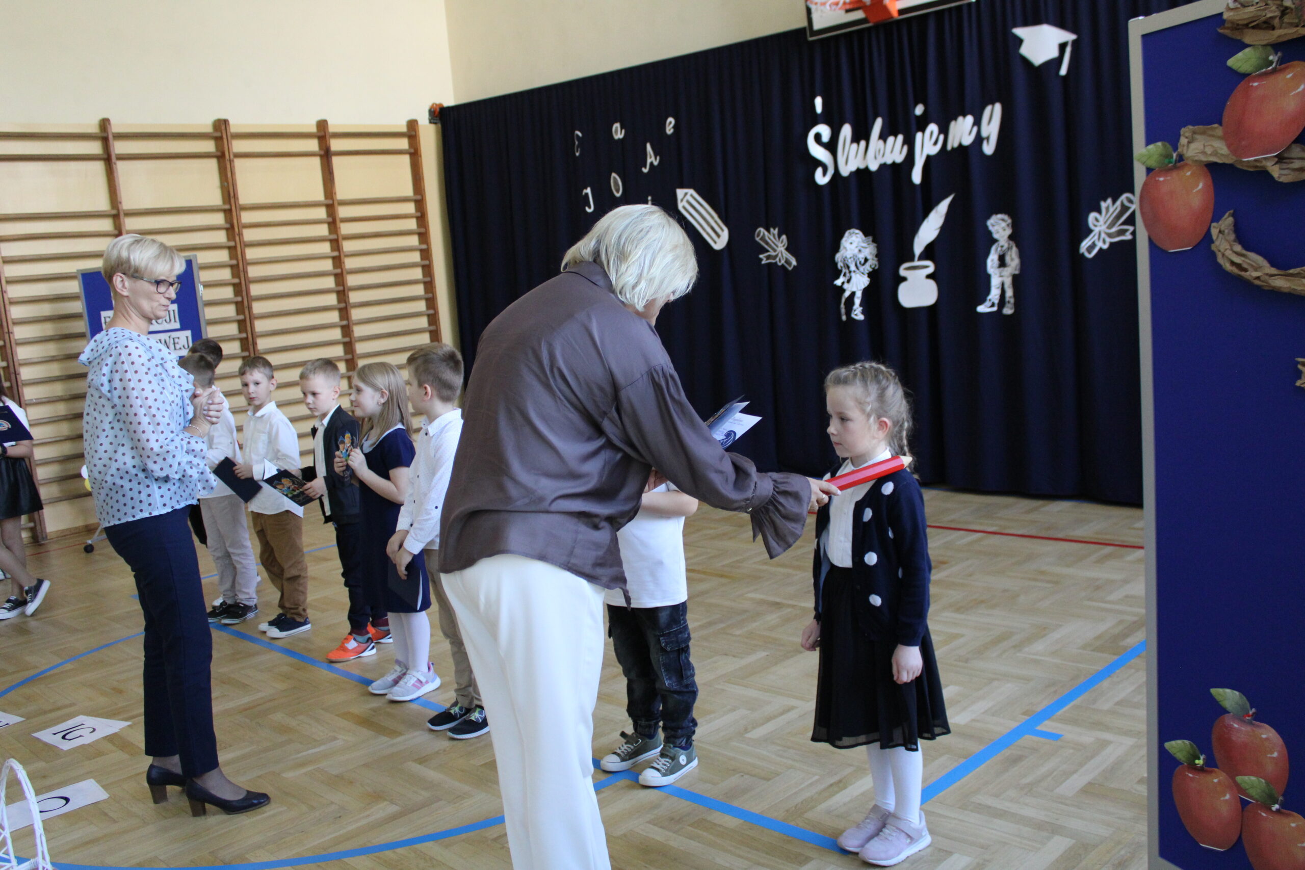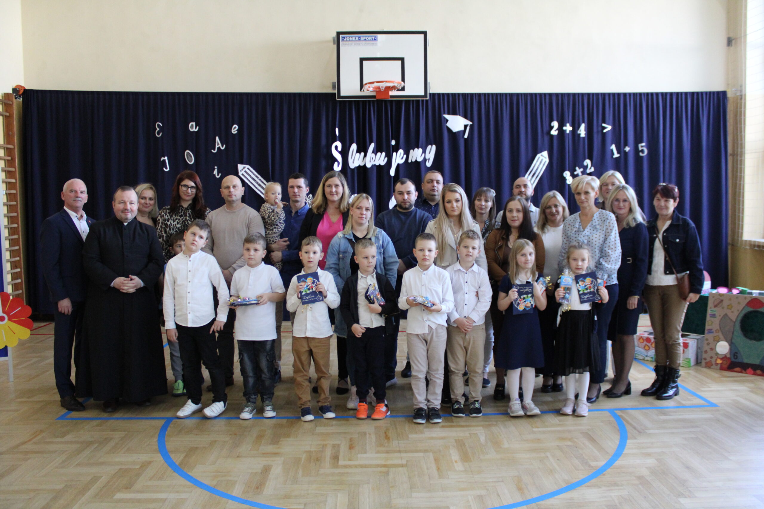 Dnia 13.10.2025 roku w Szkole Podstawowej im. gen. bryg. Franciszka Włada w Kamionie odbyło się uroczyste ślubowanie i pasowanie na ucznia klasy pierwszej. W uroczystościach wzięli udział zaproszeni goście, dyrektor szkoły, rodzice, nauczyciele oraz uczniowie. Pierwszoklasiści przedstawili część artystyczną, na którą składały się wiersze, piosenki oraz znajomość ruchu drogowego. Po prezentacji umiejętności i wiadomości uczniowie w podniosłej atmosferze przed pocztem sztandarowym ślubowali być dobrymi Polakami, godnie reprezentować swoją szkołę, oraz swym zachowaniem i nauką sprawiać radość rodzicom i nauczycielom. Po złożeniu Ślubowania Pani Dyrektor Szkoły Marzena Cichy kolorowym ołówkiem dokonała symbolicznego aktu pasowania na ucznia. Dzieci otrzymały również dyplomy ,prezenty od: Rady Rodziców, Wójta Gminy w Młodzieszynie oraz uczniów młodszych klas. Rodzice przygotowali piękny tort, słodkości oraz prezenty.