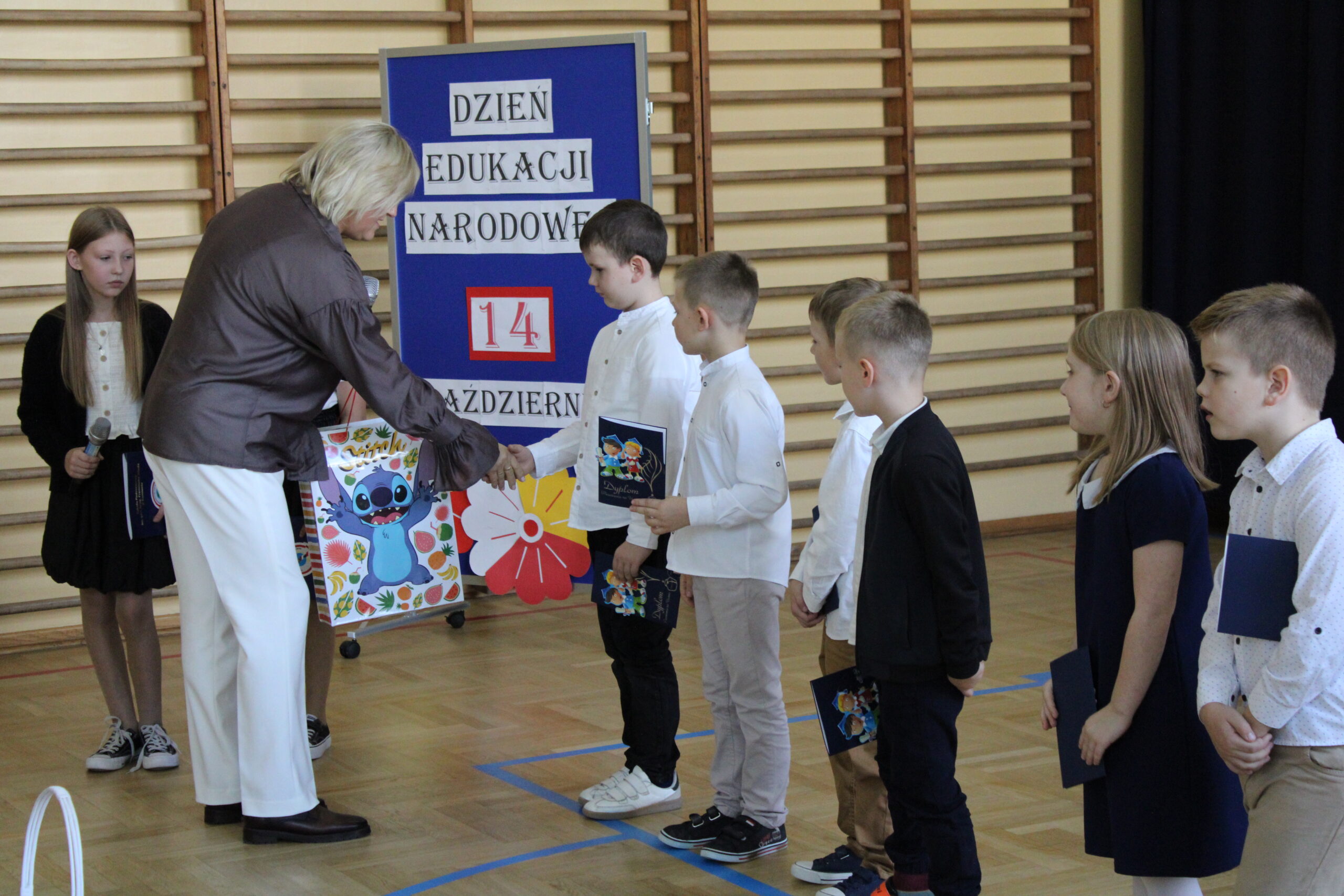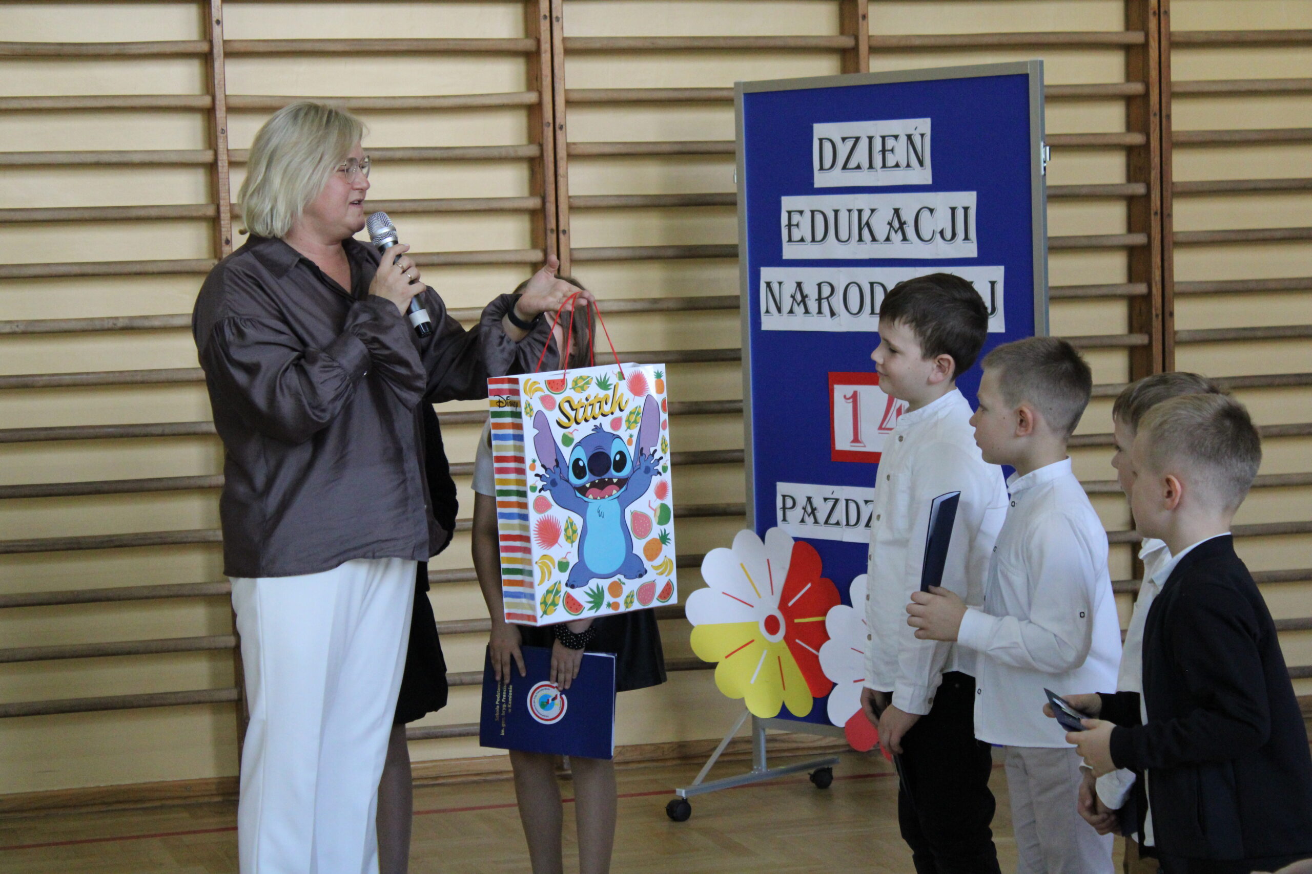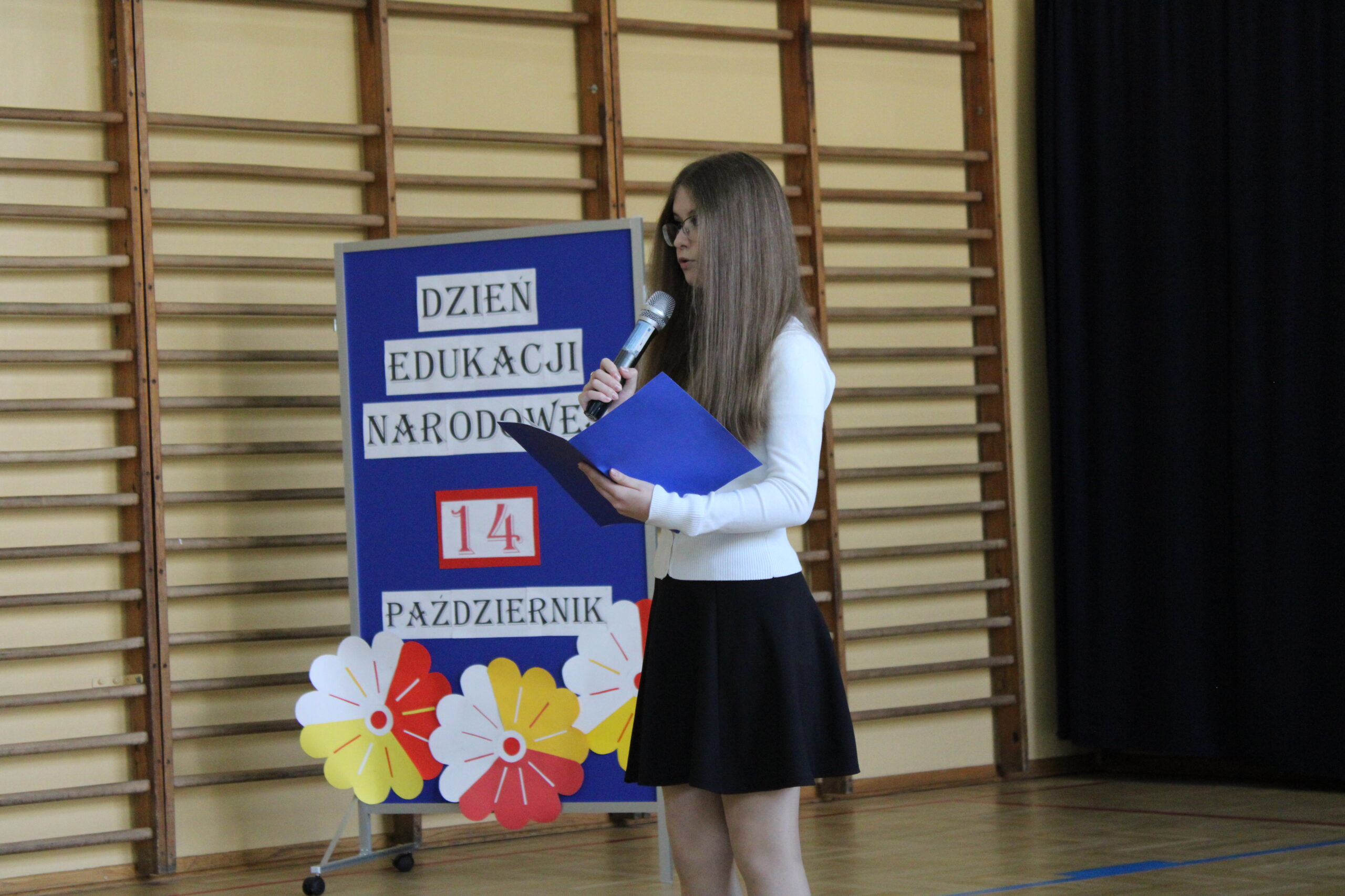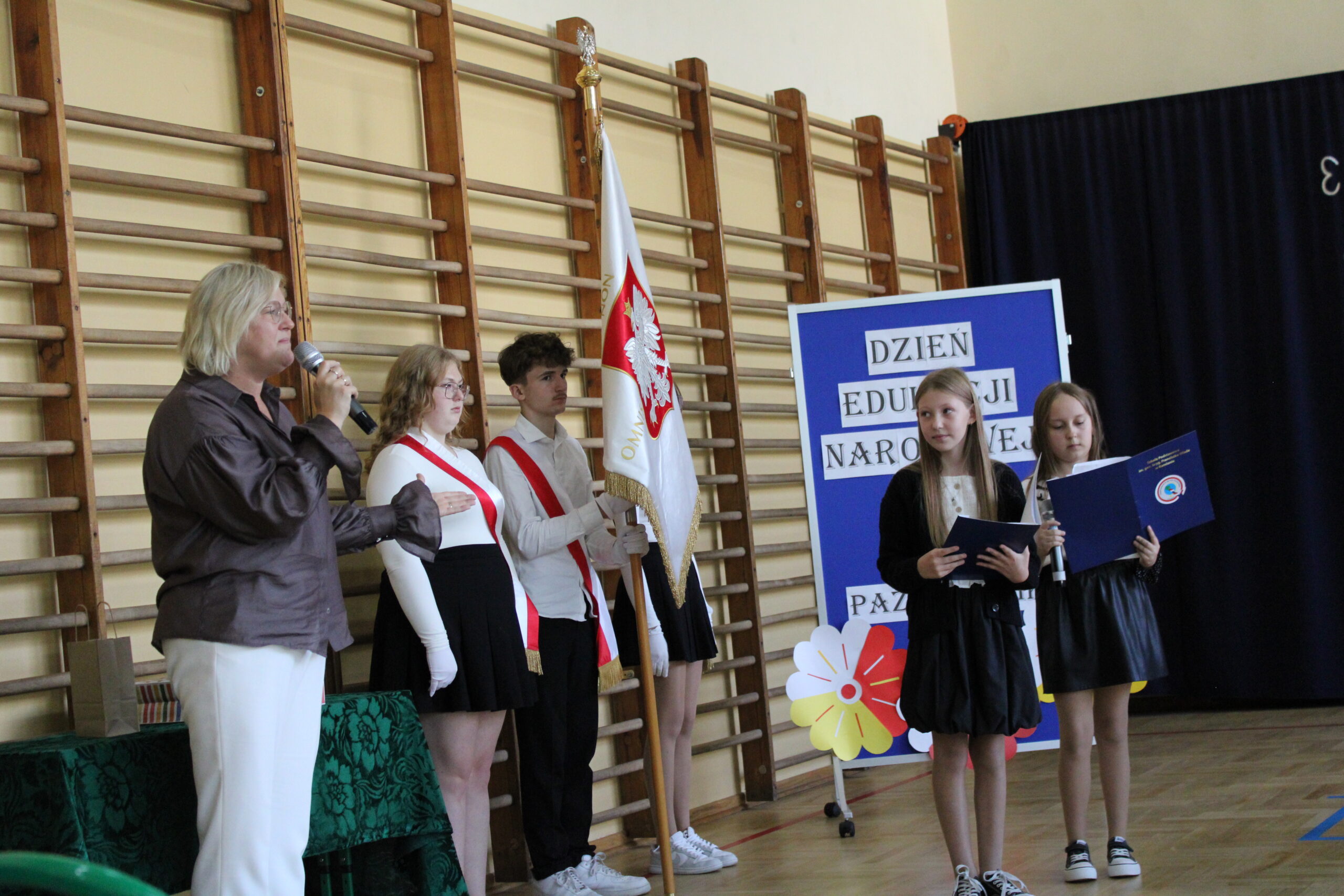 Na zakończenie akademii głos zabrała Pani Dyrektor Szkoły Marzena Cichy, która mówiła o trudnej, ale jakże pięknej pracy nauczyciela. Podziękowała za dotychczasowe zaangażowanie oraz życzyła wielu sił i wytrwałości w tym wyjątkowym zawodzie.