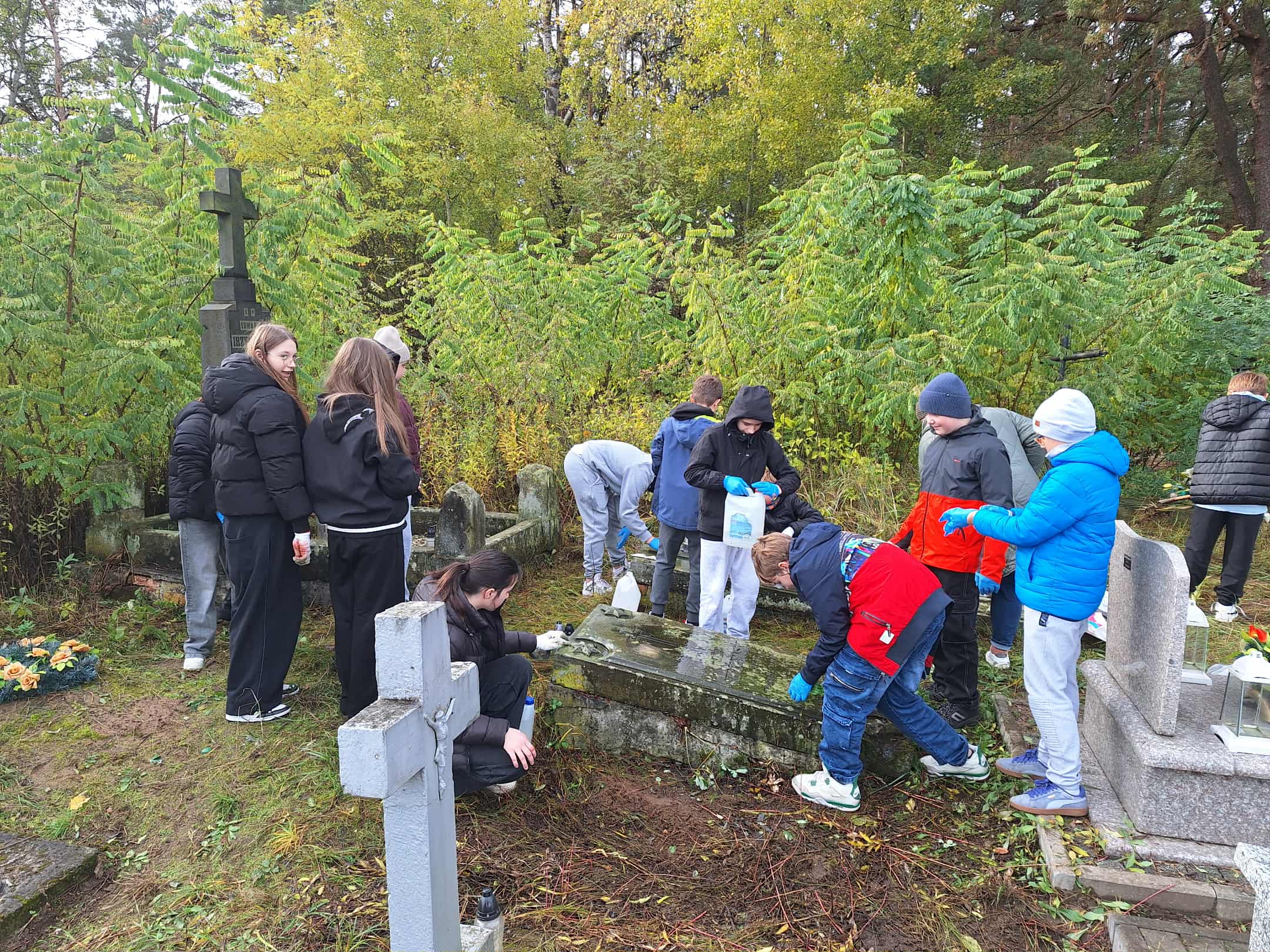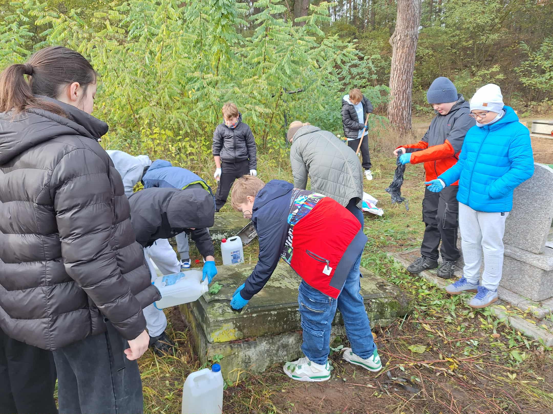 Uczniowie Szkoły Podstawowej w Kamionie odwiedzili cmentarz parafialny, by jak co roku uporządkować zapomniane groby. Dzieci z zaangażowaniem sprzątały mogiły, grabiły liście i zapalały znicze na grobach żołnierzy, księży oraz osób, o których pamięć z biegiem lat przygasła. To coroczne działanie jest wyrazem szacunku dla tych, którzy odeszli, oraz lekcją patriotyzmu i wrażliwości. Pamięć o zmarłych to ważna część naszej tradycji i tożsamości – uczy wdzięczności, pokory i ciągłości pokoleń.