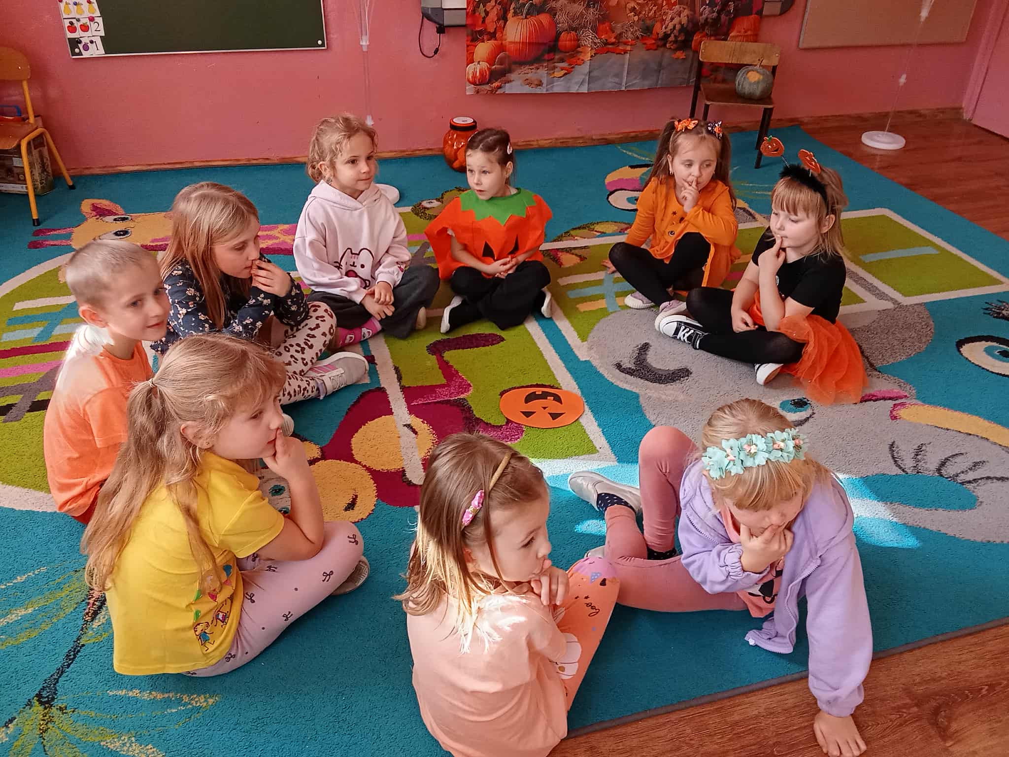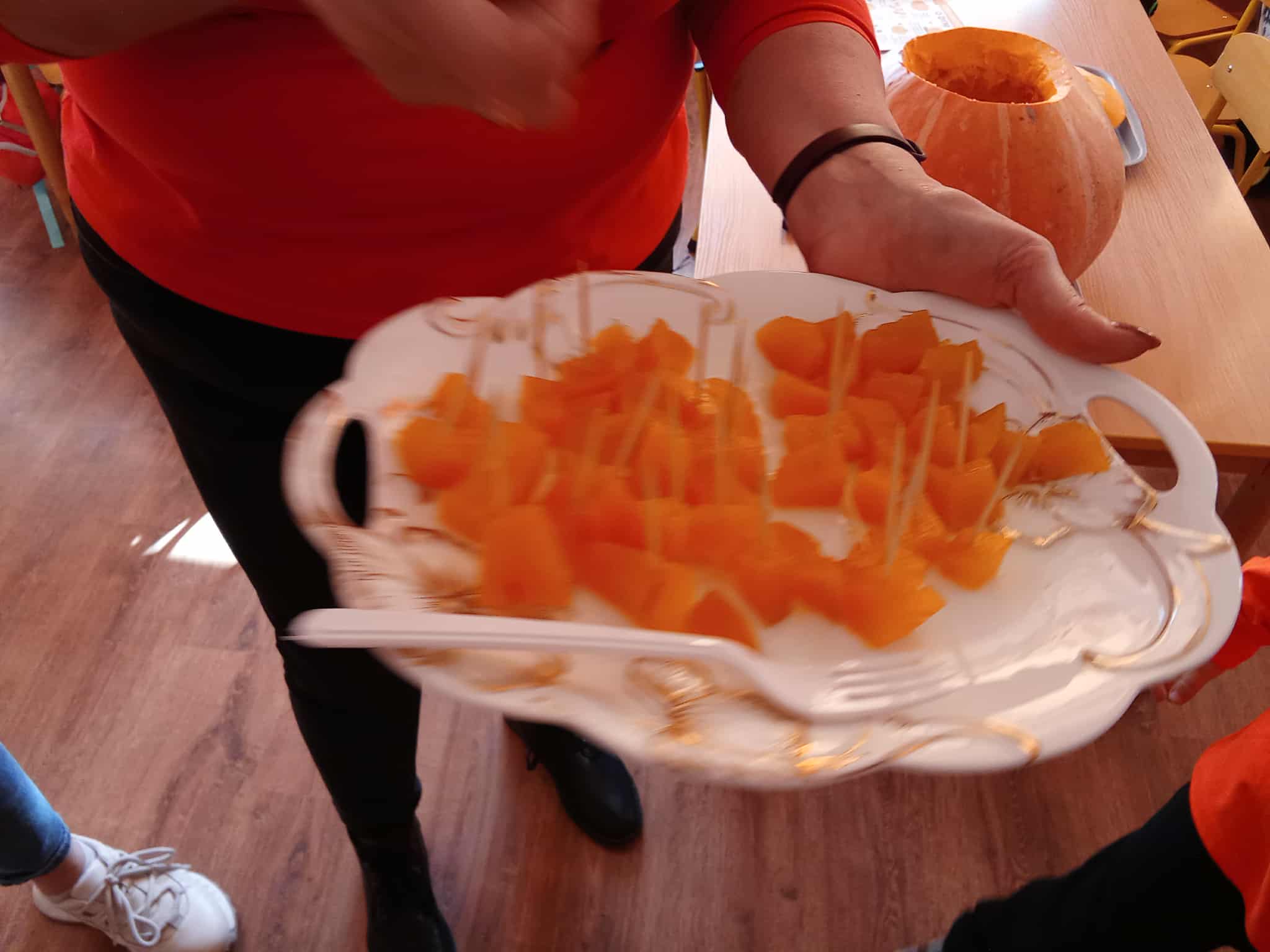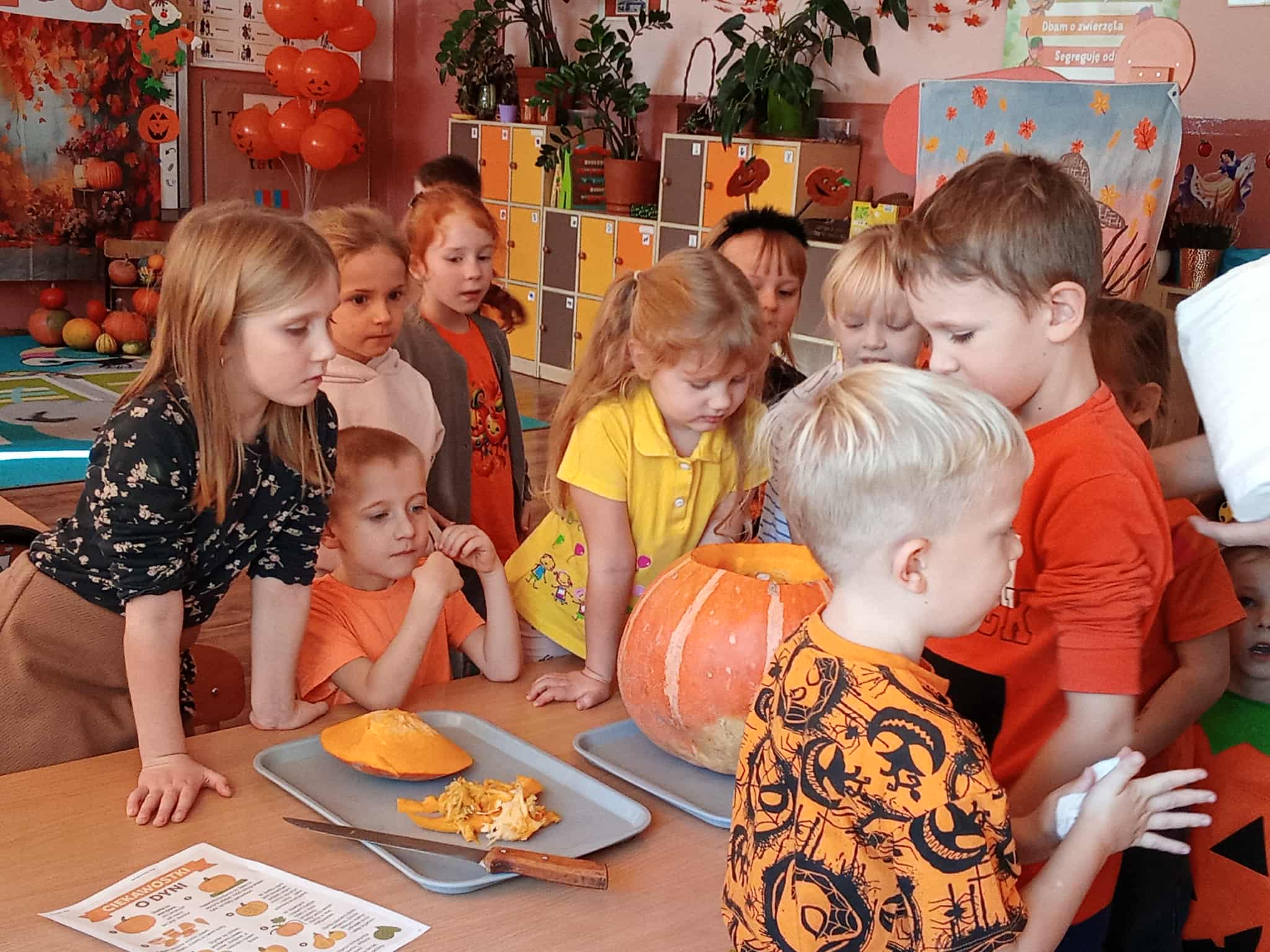 . Nie zabrakło też małej przygody badawczej – wspólnie rozkroiliśmy dynię, a dzieci mogły zobaczyć, dotknąć i spróbować co kryje się w jej wnętrzu