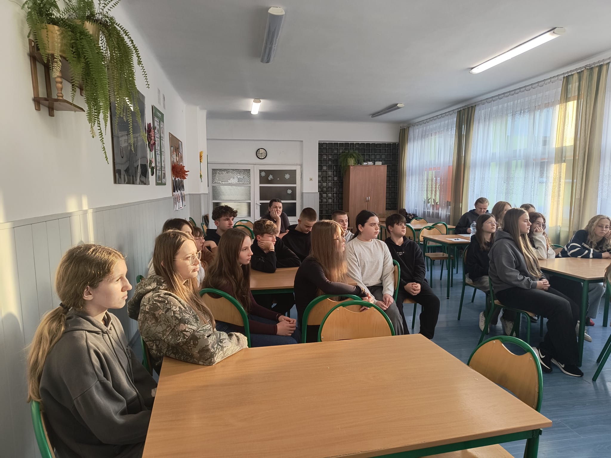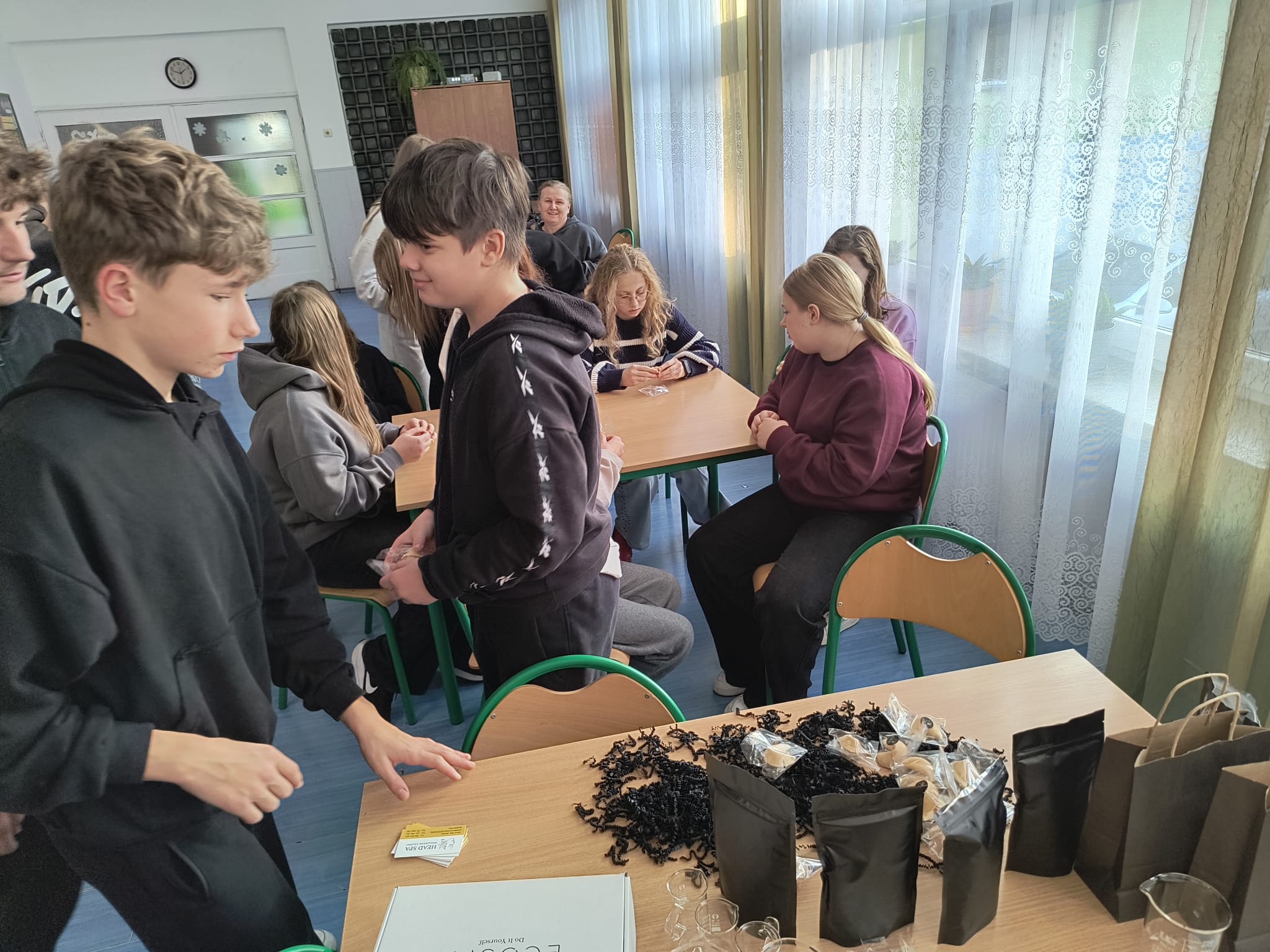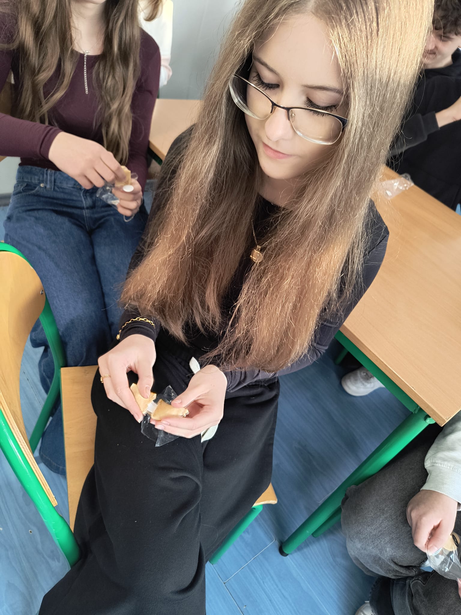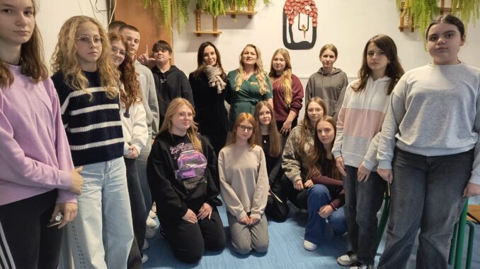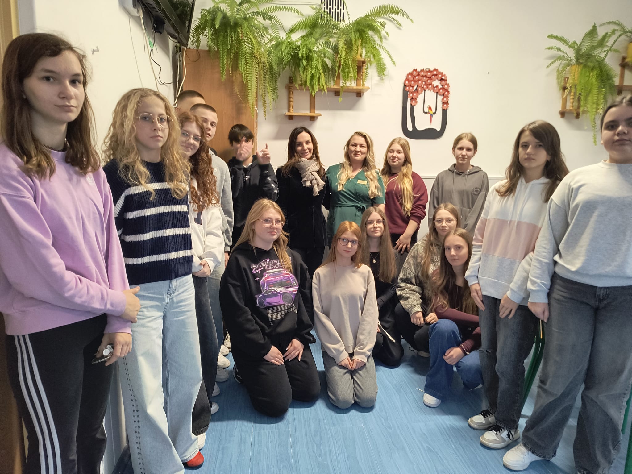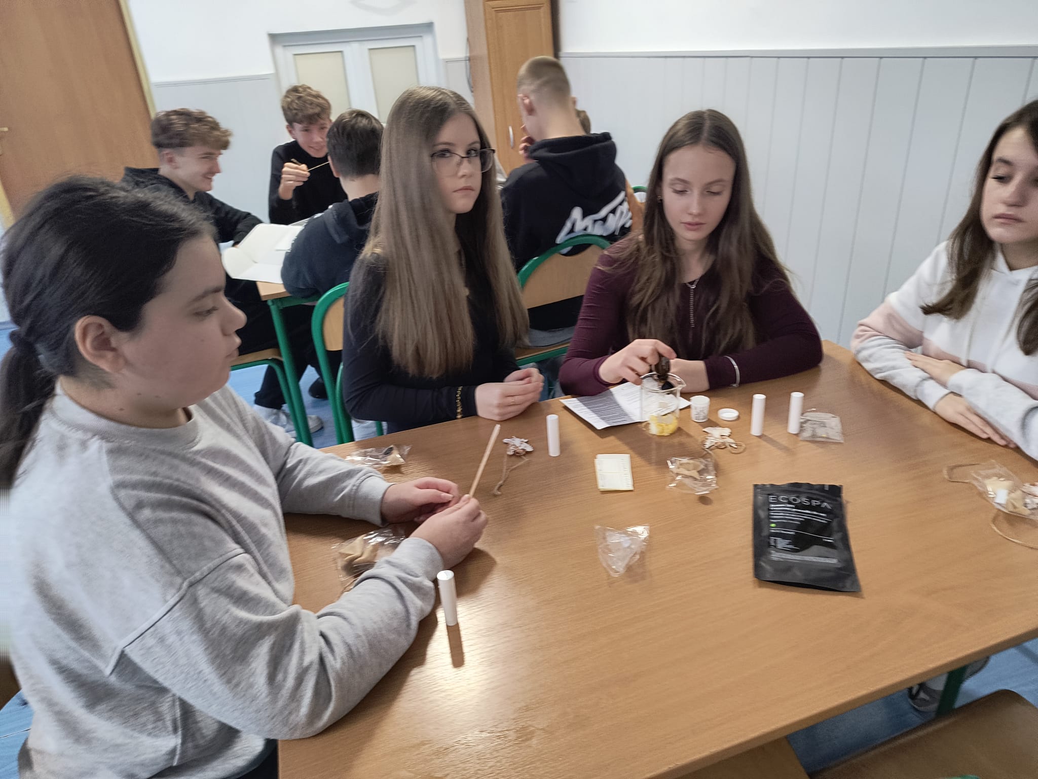 20.11.2025 r. w naszej szkole gościliśmy dwie wspaniałe kobiety z pasją i wrażliwością na drugiego człowieka niosące pomoc i radość. Pani Karolina i Pani Edyta właścicielki Wellnes Clinic, które opowiedziały o swojej pracy oraz poprowadziły warsztaty podczas których uczniowie przygotowywali pomadki ochronne i zawieszki zapachowe.