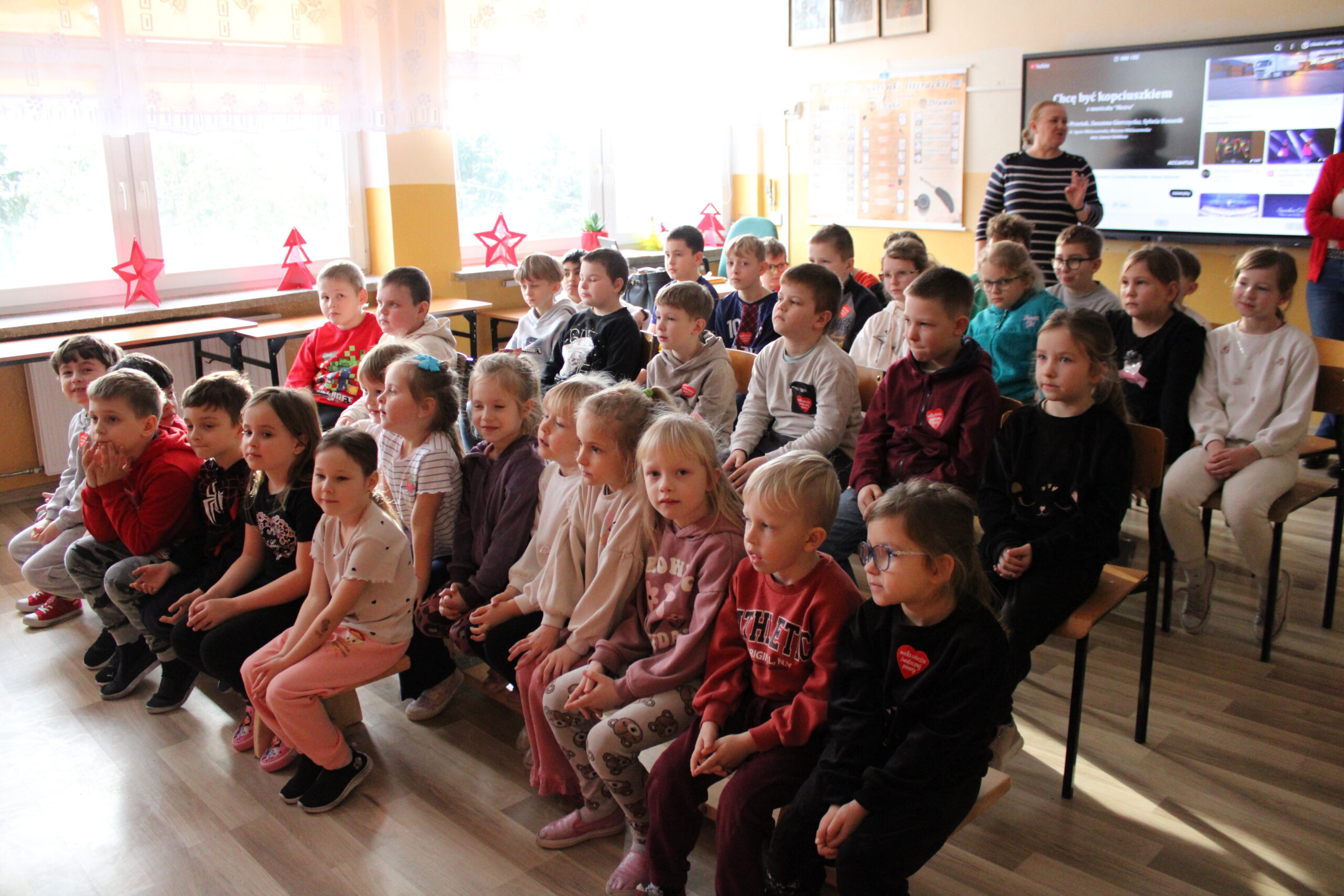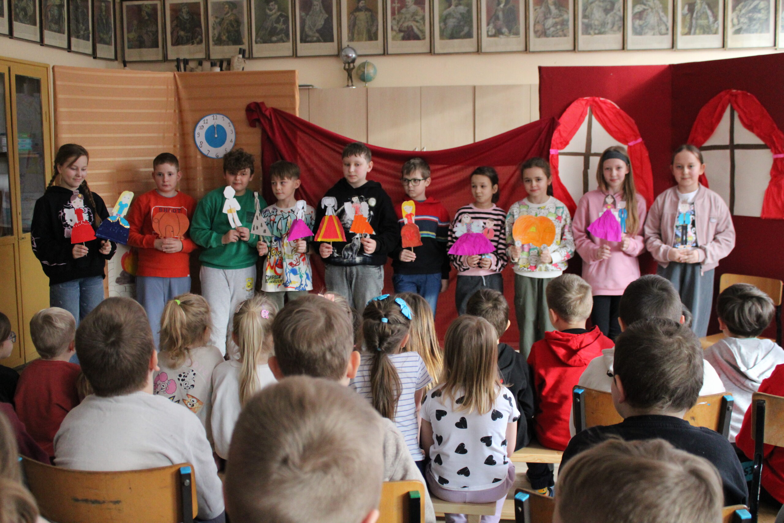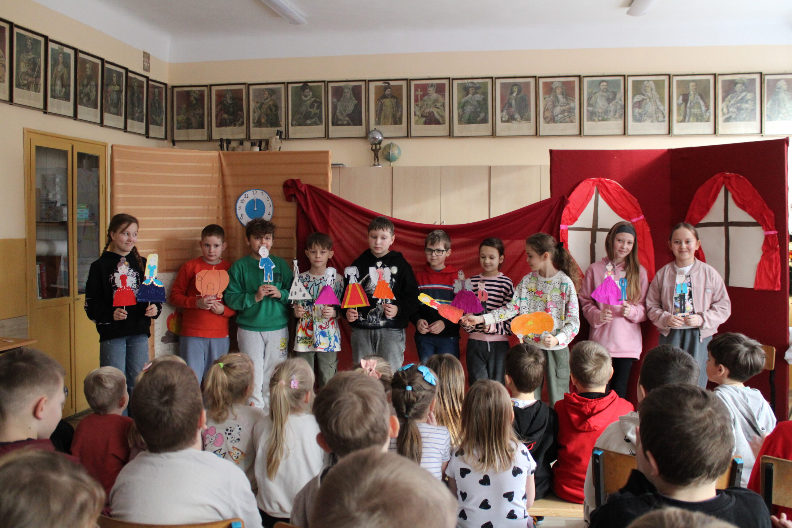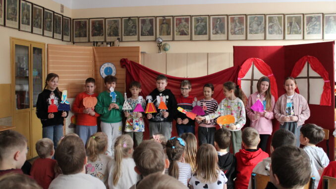 Uczniowie klasy czwartej zaprosili na przedstawienie pt. „Kopciuszek inaczej, czyli zabawa w teatr!” – dobrze wszystkim znaną i lubianą opowieść w nowej odsłonie. Inscenizację „Kopciuszka” Wandy Chotomskiej przygotowano w ramach pozalekcyjnych zajęć kółka teatralnego „Gwiazdy”. Czwartoklasiści wcielili się nie tylko w role aktorskie, ale z powodzeniem pełnili też funkcje reżyserów, scenografów, operatorów dźwięku i charakteryzatorów. Efekt końcowy – humorystyczna „bajka w stylu retro” zachwyciła widzów.