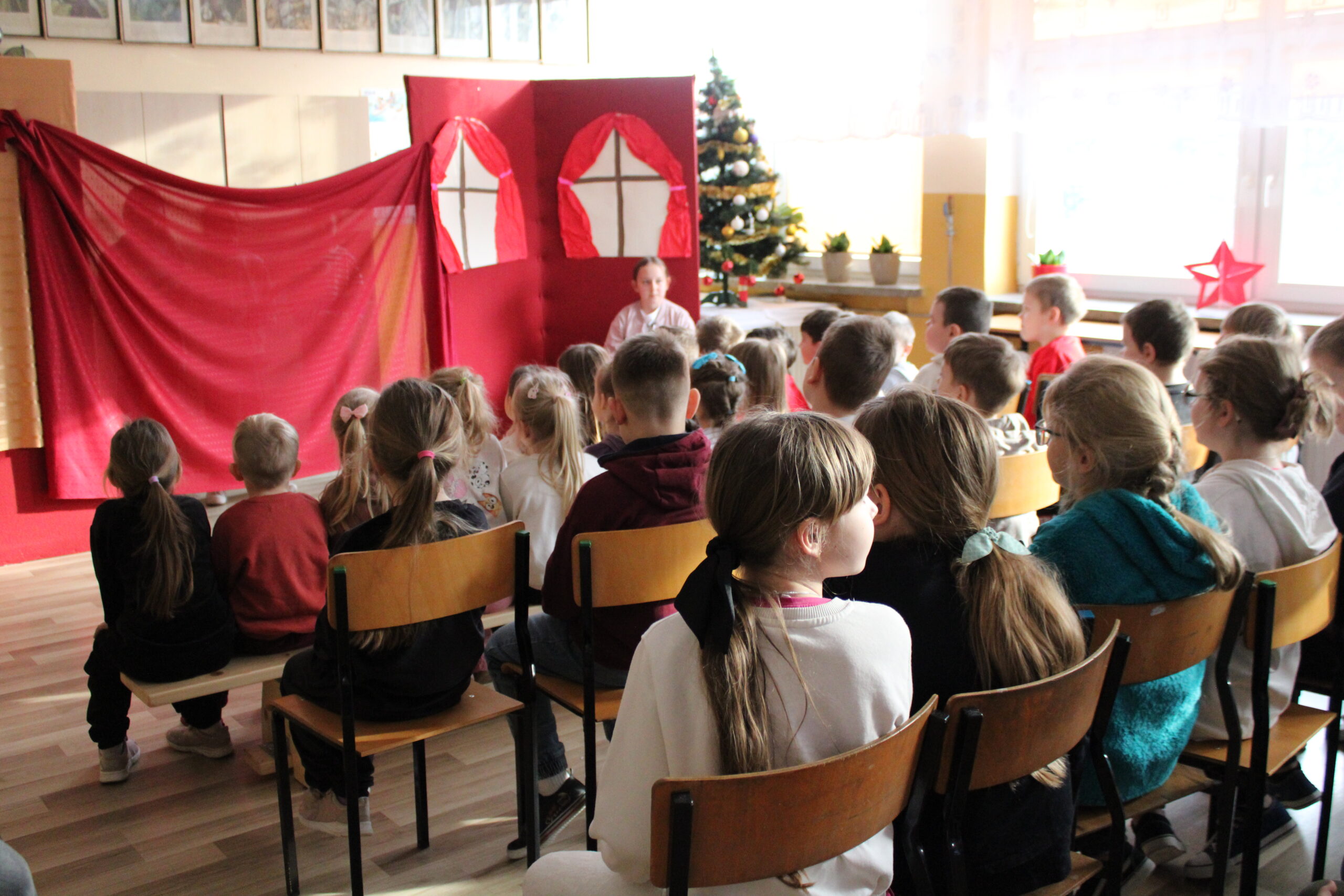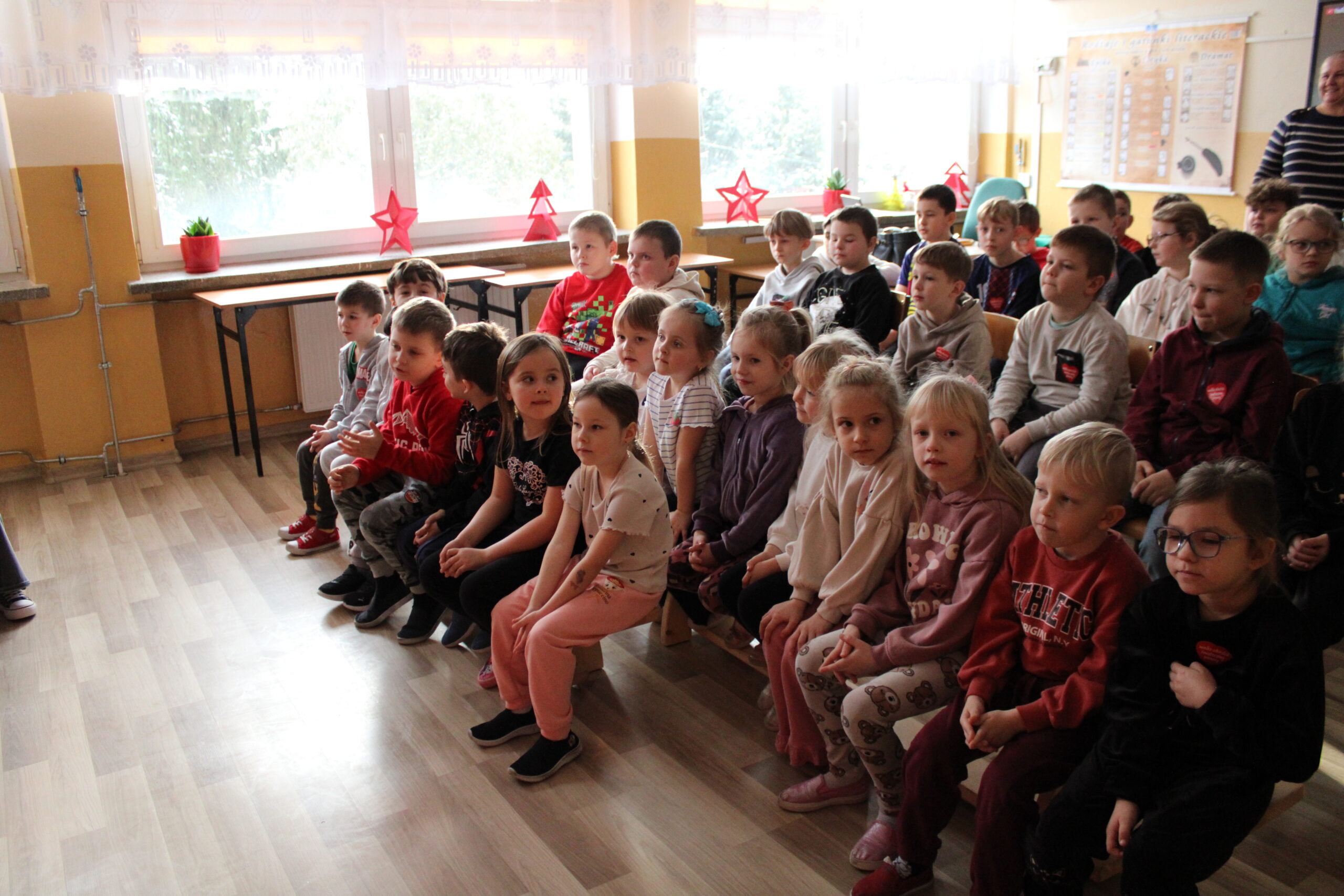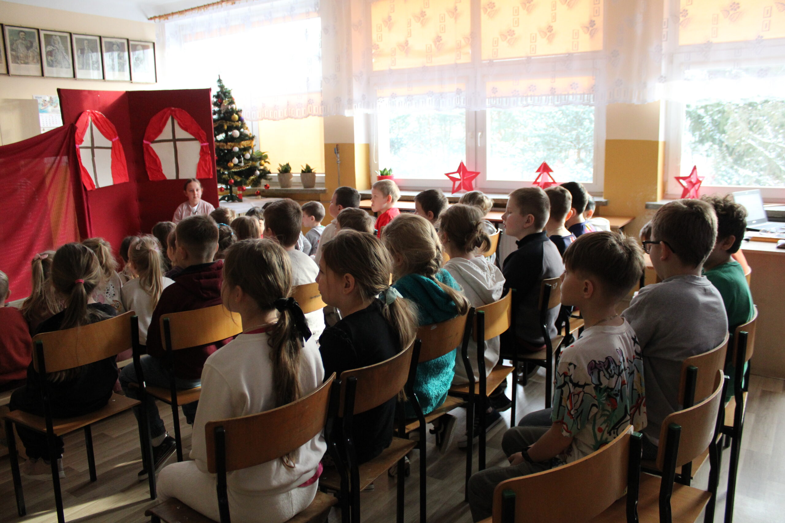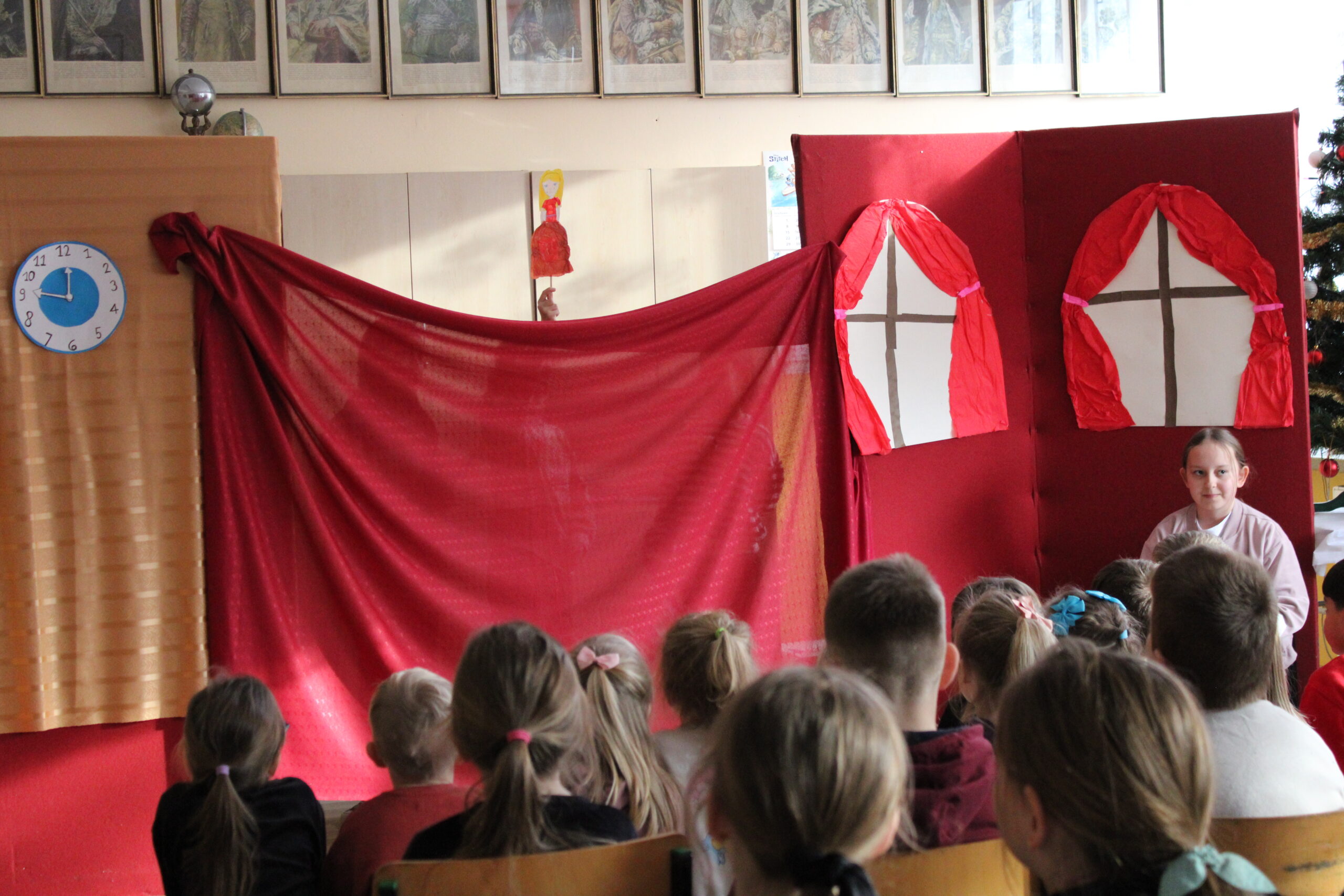 Uczniowie klasy czwartej zaprosili na przedstawienie pt. „Kopciuszek inaczej, czyli zabawa w teatr!” – dobrze wszystkim znaną i lubianą opowieść w nowej odsłonie. Inscenizację „Kopciuszka” Wandy Chotomskiej przygotowano w ramach pozalekcyjnych zajęć kółka teatralnego „Gwiazdy”. Czwartoklasiści wcielili się nie tylko w role aktorskie, ale z powodzeniem pełnili też funkcje reżyserów, scenografów, operatorów dźwięku i charakteryzatorów. Efekt końcowy – humorystyczna „bajka w stylu retro” zachwyciła widzów.