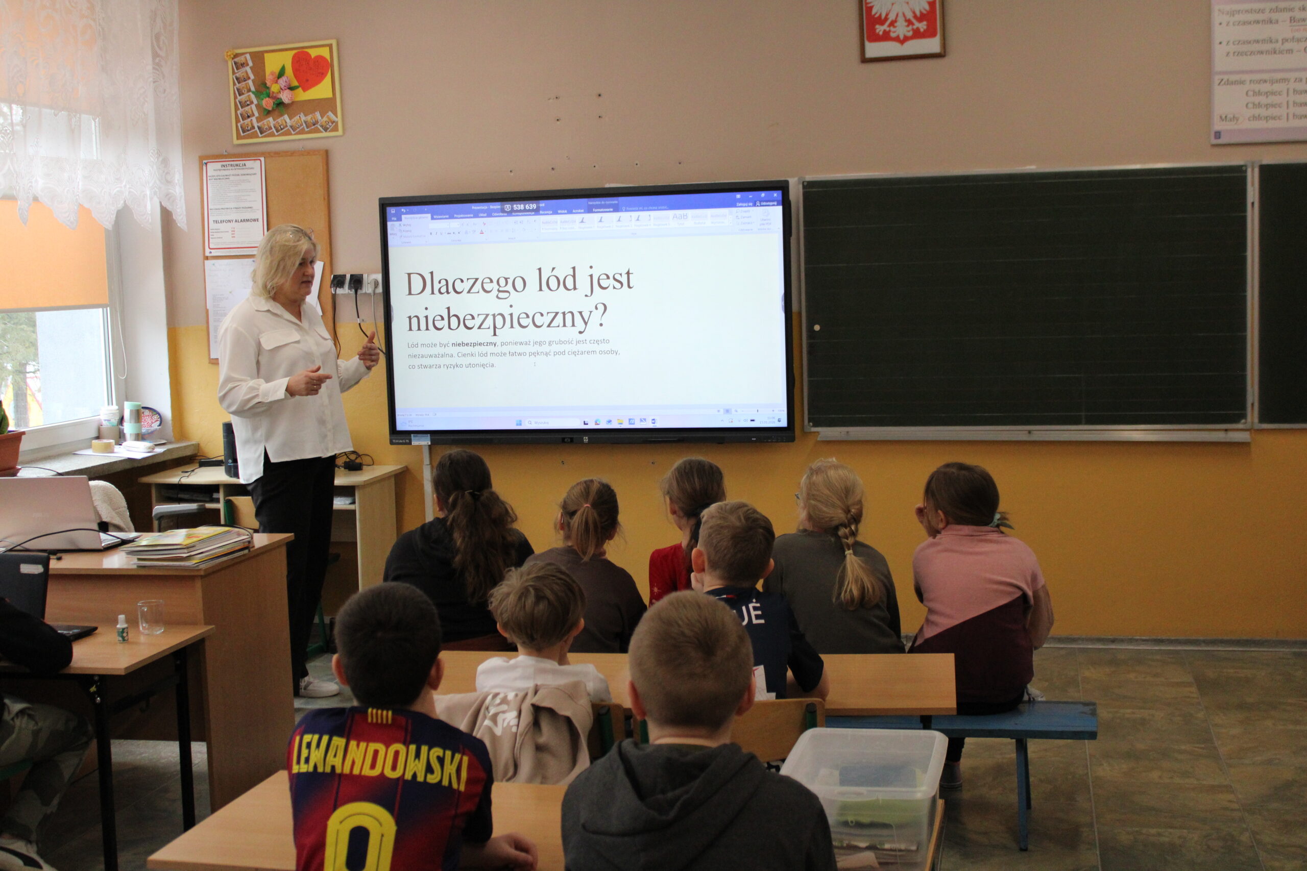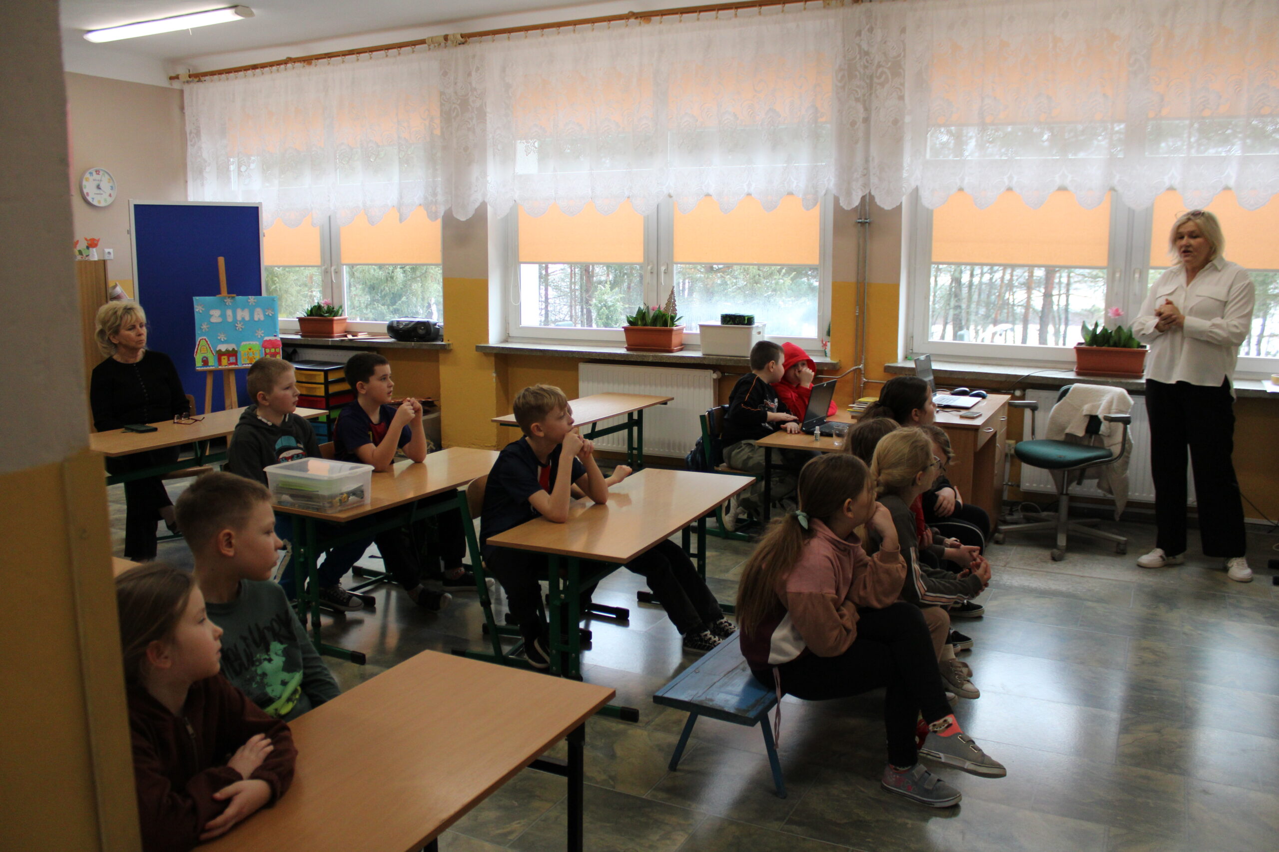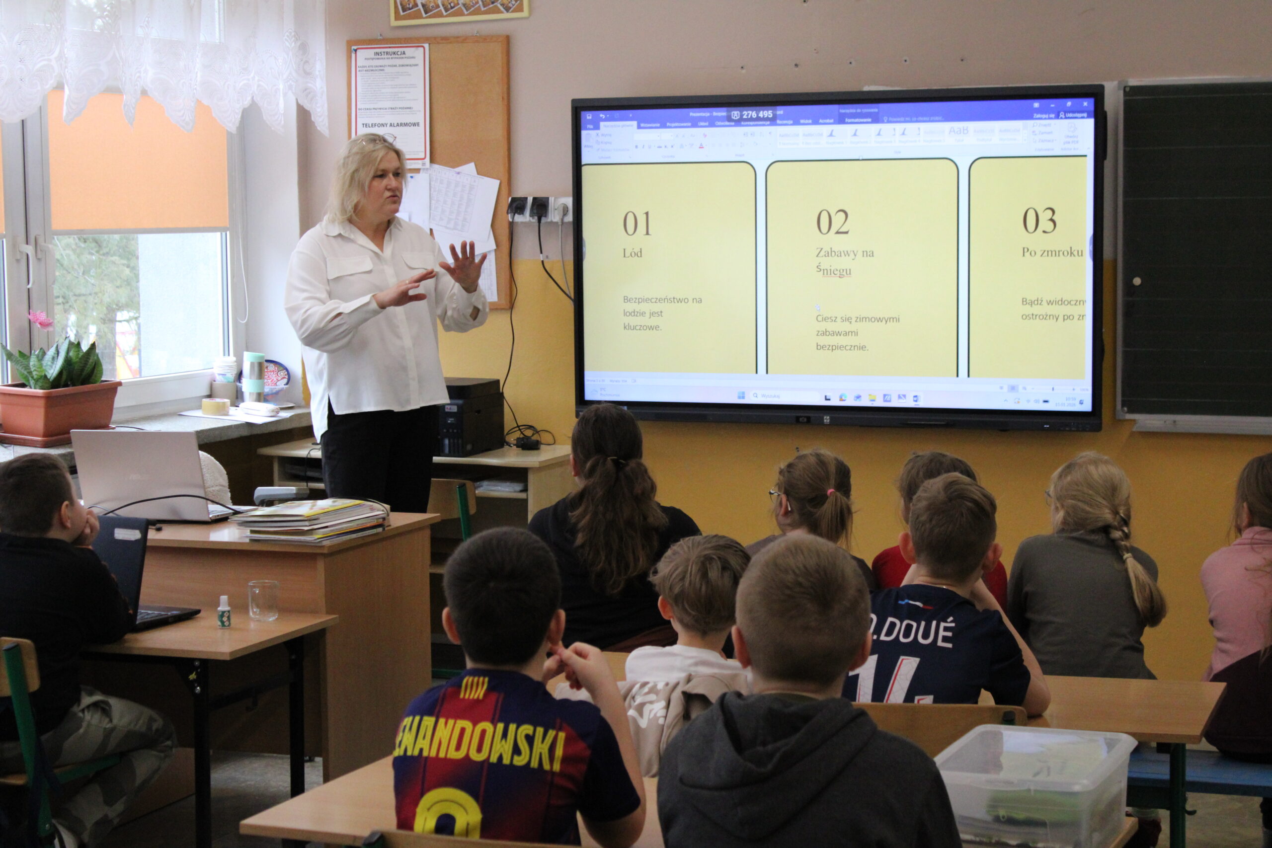 przeprowadziła zajęcia, podczas których przypomniała uczniom zasady bezpiecznego zachowania podczas ferii zimowych
