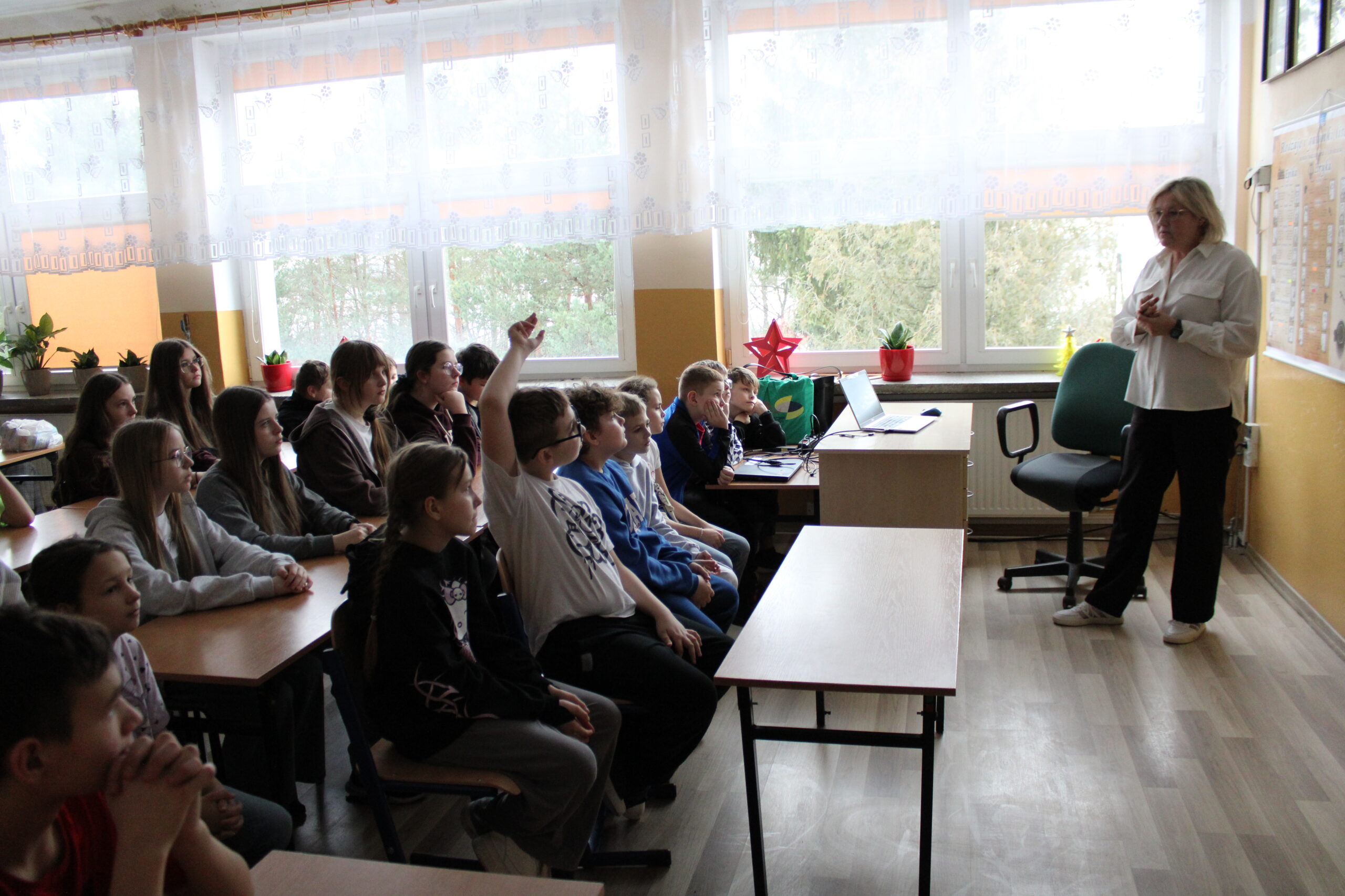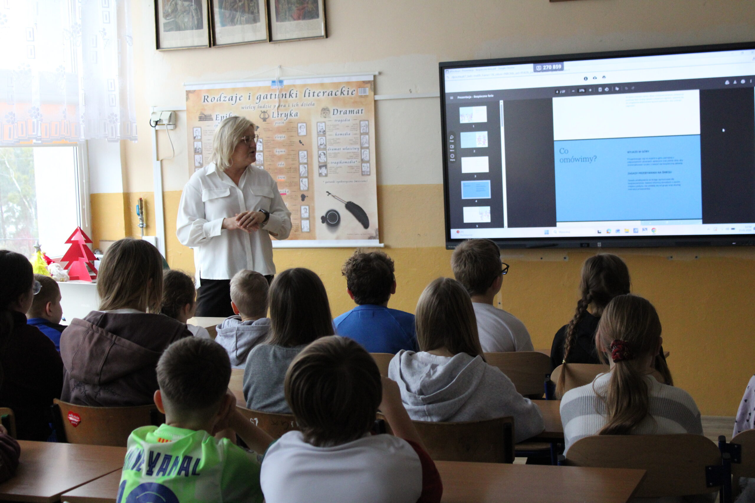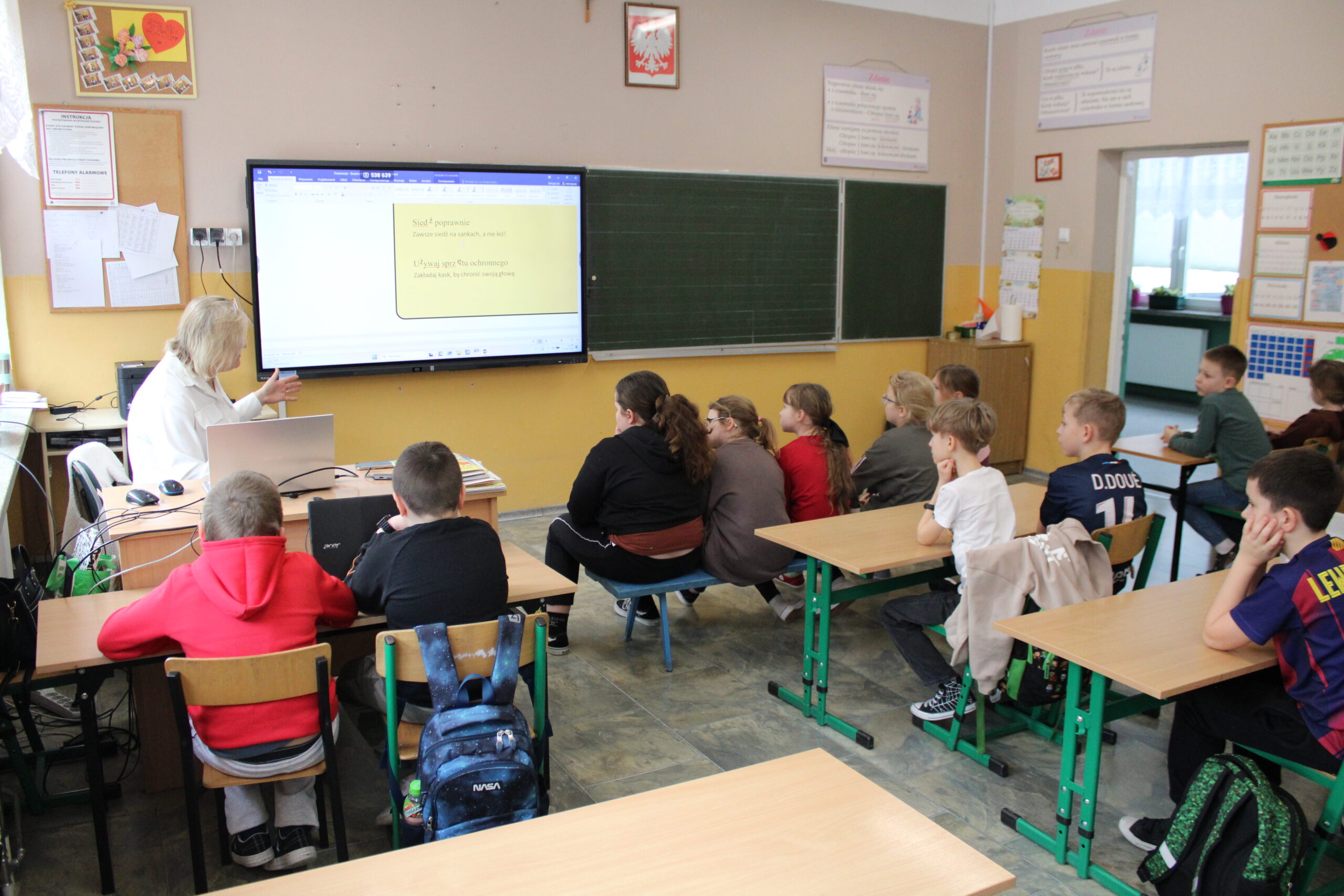 przeprowadziła zajęcia, podczas których przypomniała uczniom zasady bezpiecznego zachowania podczas ferii zimowych