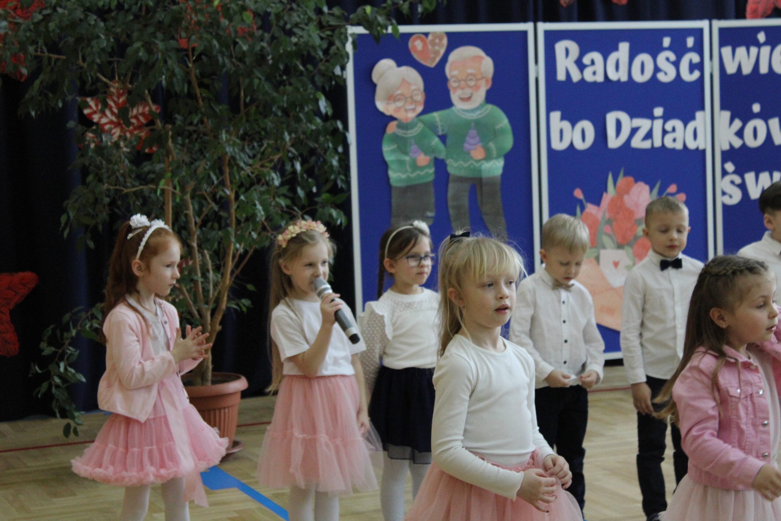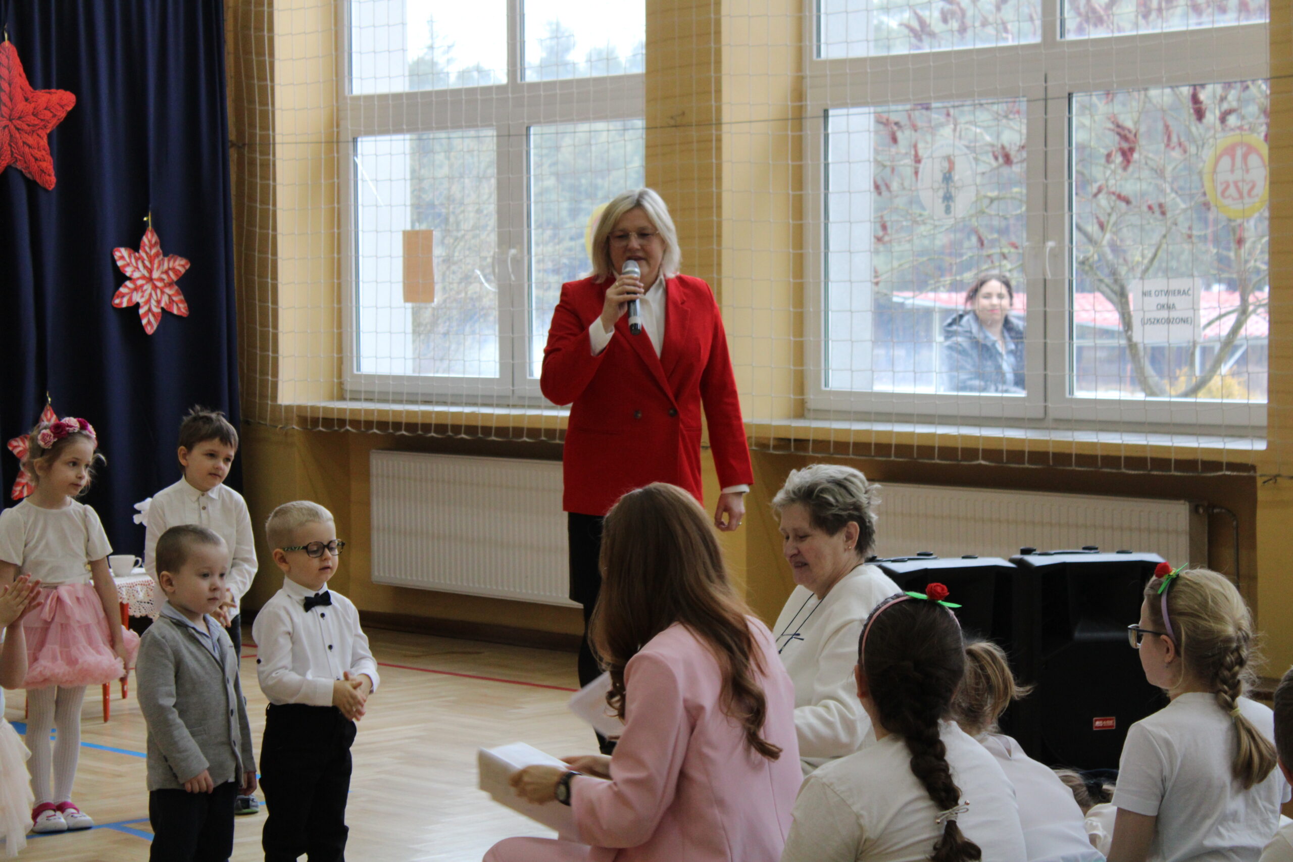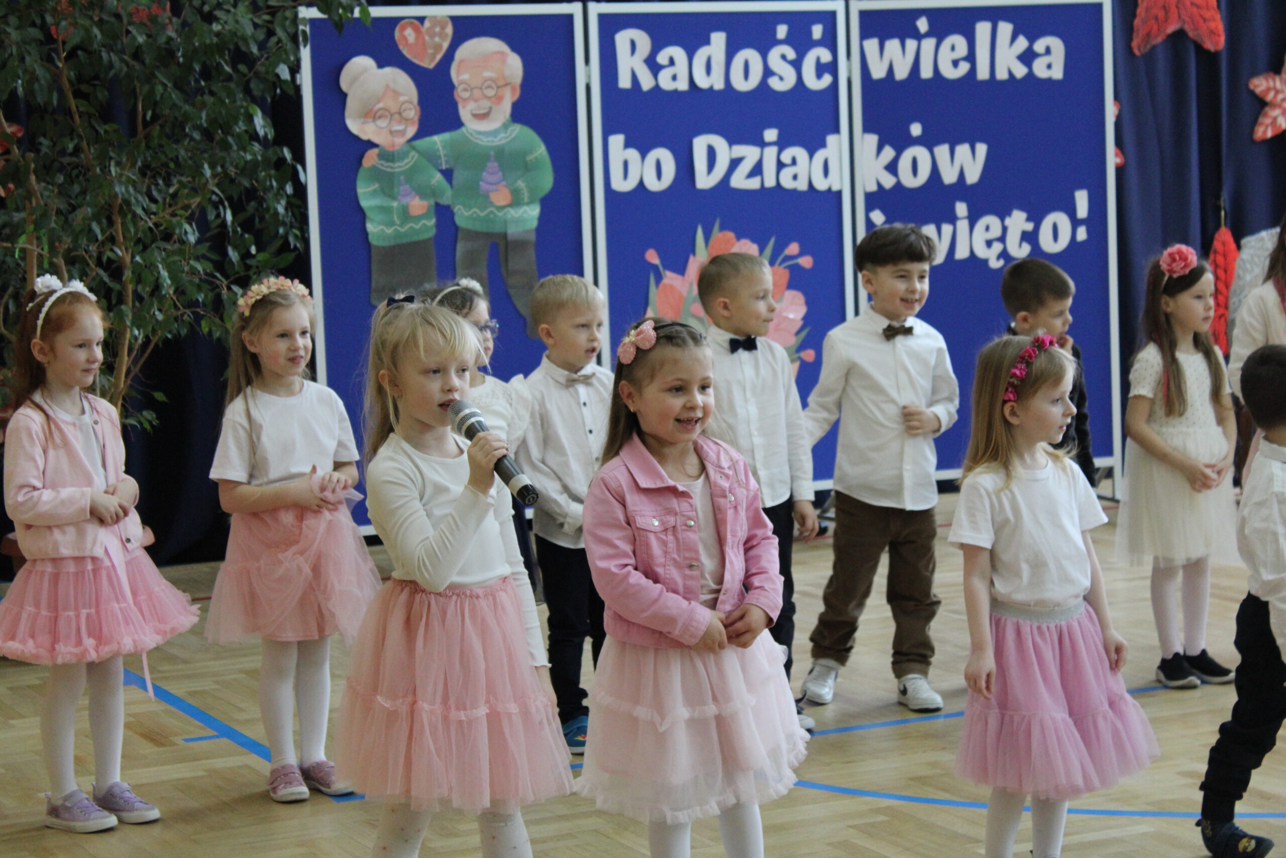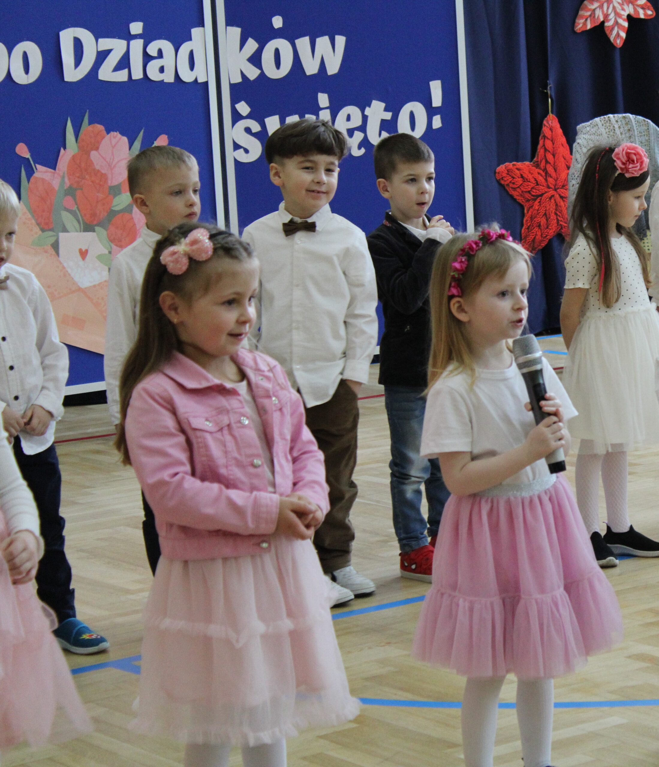 Spotkanie rozpoczęło się od serdecznego powitania babć i dziadków przez dyrekcję szkoły. Podkreślono, jak ważną rolę w życiu dzieci odgrywają dziadkowie — ich mądrość, cierpliwość, wsparcie i bezwarunkowa miłość. W słowach skierowanych do gości nie zabrakło wdzięczności za ich obecność i codzienny wkład w wychowanie najmłodszych.