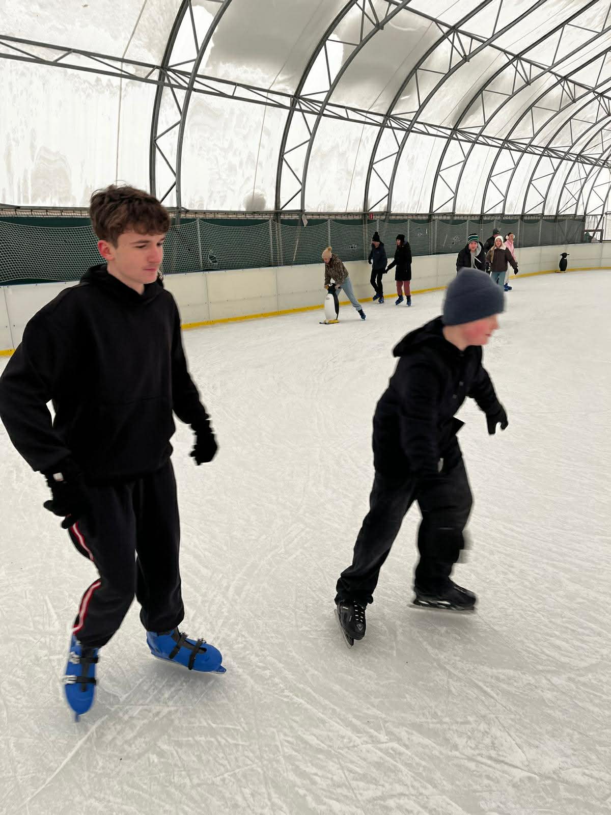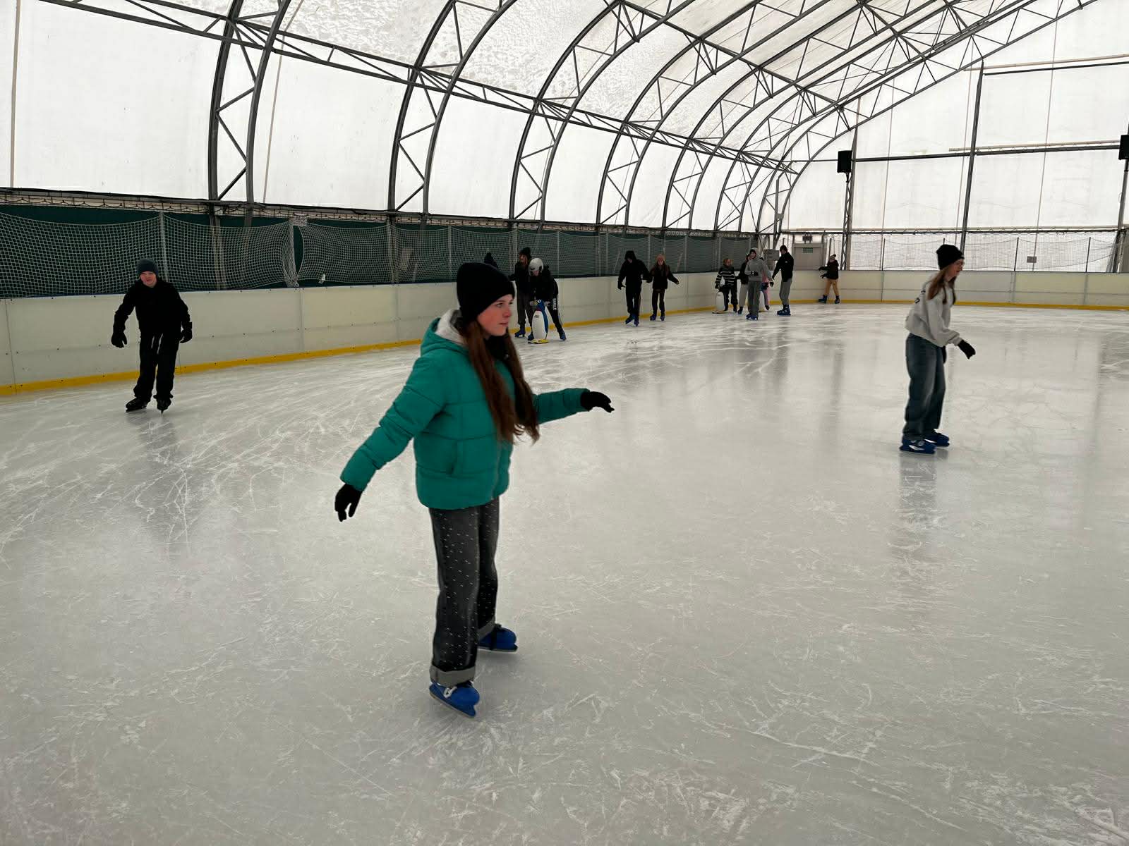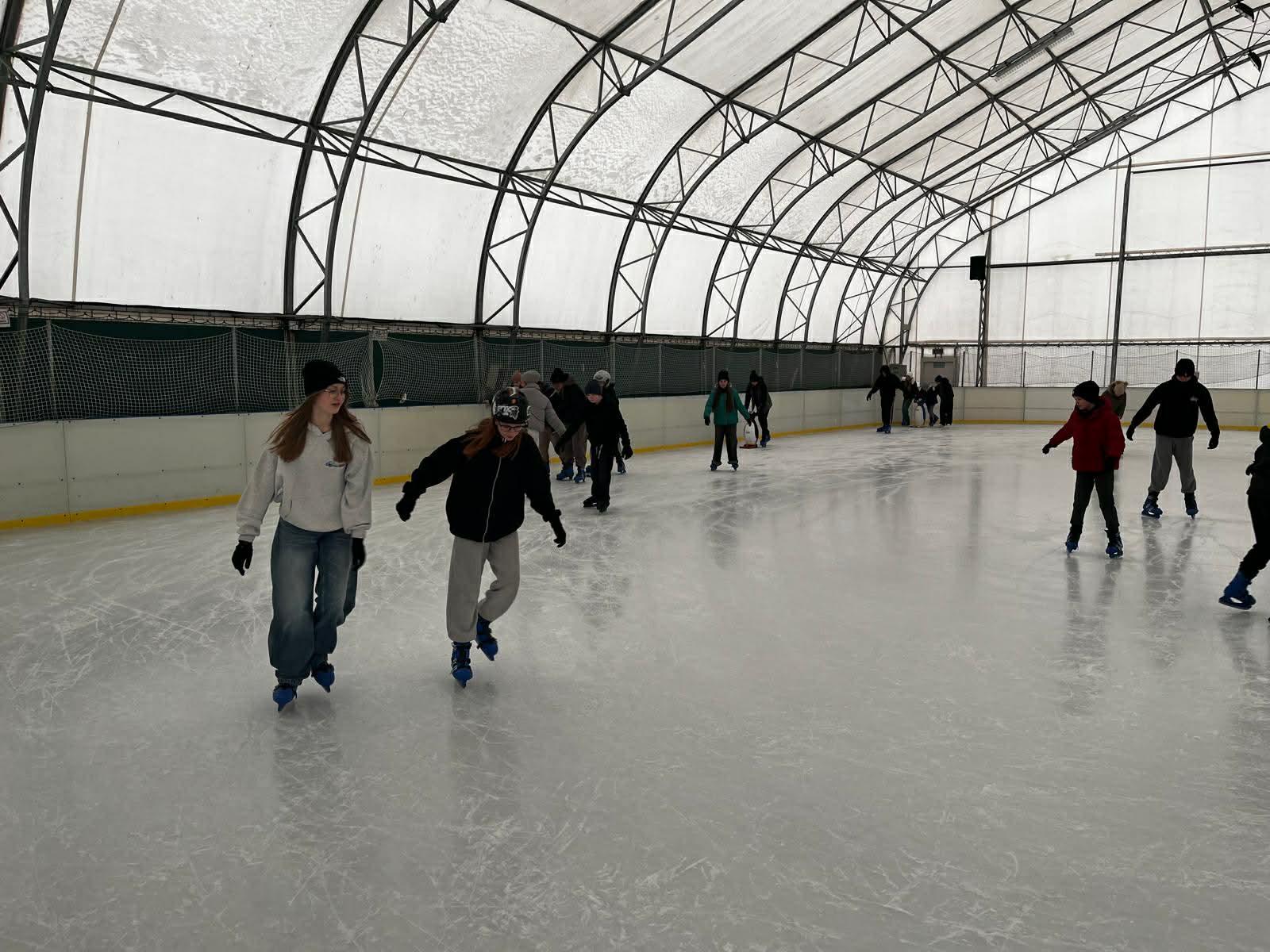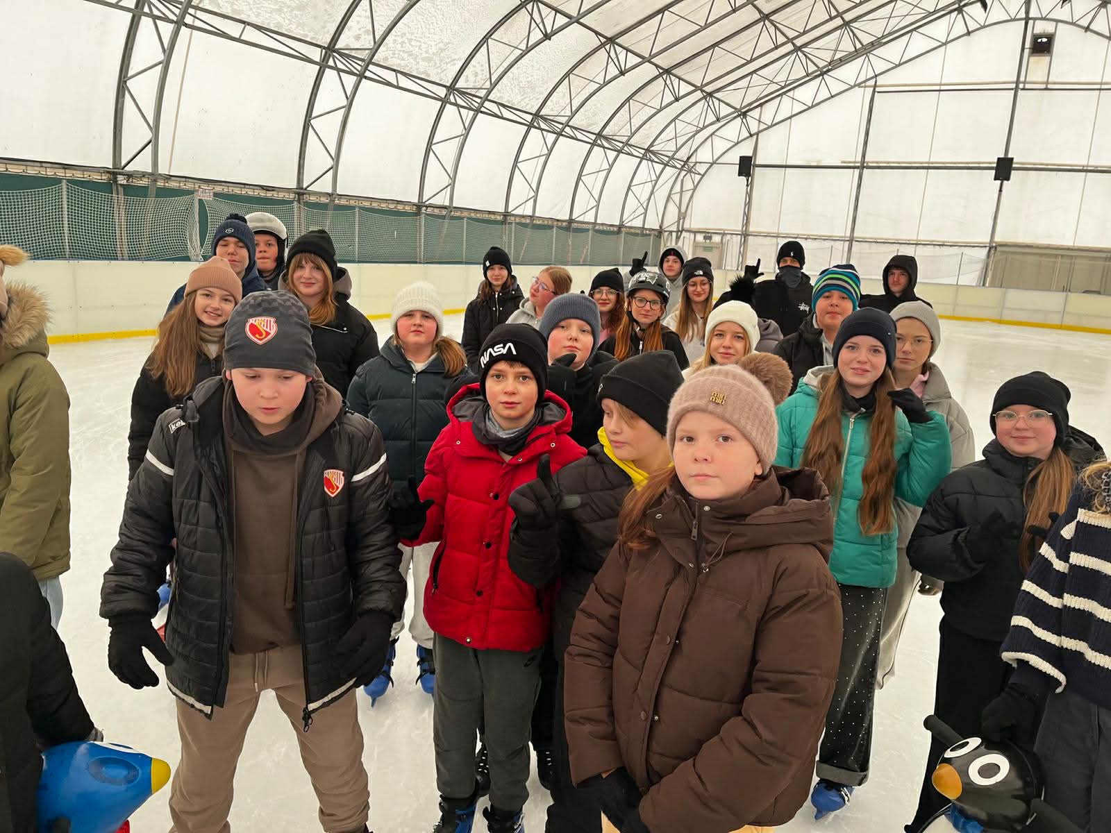 W dniu 18 lutego 2026r odbyła się wycieczka na lodowisko miejskie do Sochaczewa, w której uczestniczyli uczniowie kl. V, VI, i VIII wraz z nauczycielami. Głównym celem wycieczki było doskonalenie jazdy na łyżwach. Grupa naszych uczniów świetnie się bawiła podczas dwugodzinnego pobytu. Część uczniów doskonale sprawdzała się w jeździe na łyżwach, a część uczniów miała po raz pierwszy łyżwy na nogach. Jednakże wszyscy uczniowie byli zadowoleni z pobytu, zachwyceni pięknym lodowiskiem i zapowiedzieli powrót na lodowisko w najbliższym możliwym czasie.