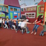 Dzieci mogły korzystać z licznych atrakcji — od torów przeszkód, przez baseny z piłeczkami, aż po ogromne dmuchańce. Radości nie było końca. Wspólne zabawy sprzyjały integracji, a nauczyciele z przyjemnością obserwowali, jak uczniowie współpracują, pomagają sobie i zarażają się nawzajem dobrym humorem.