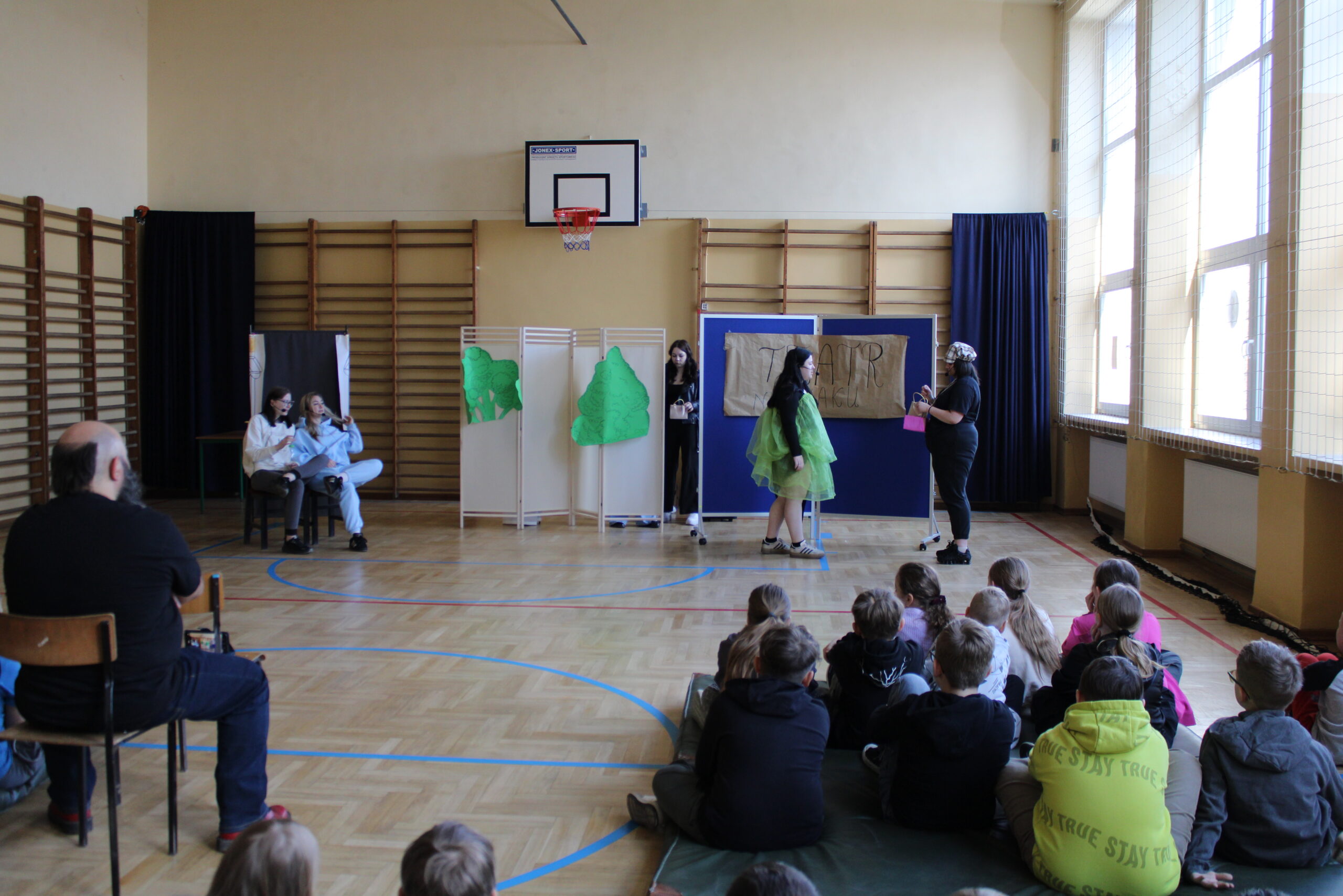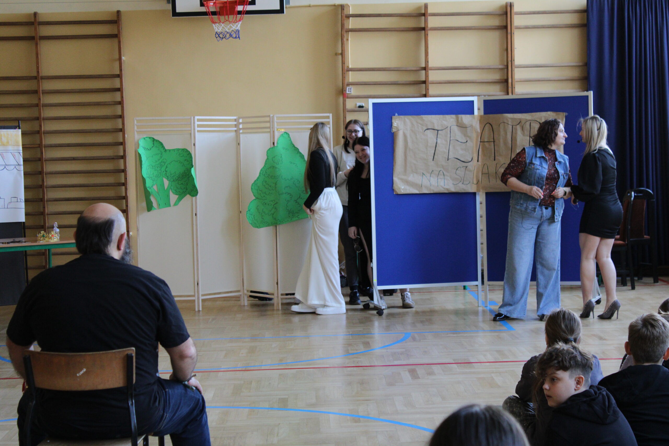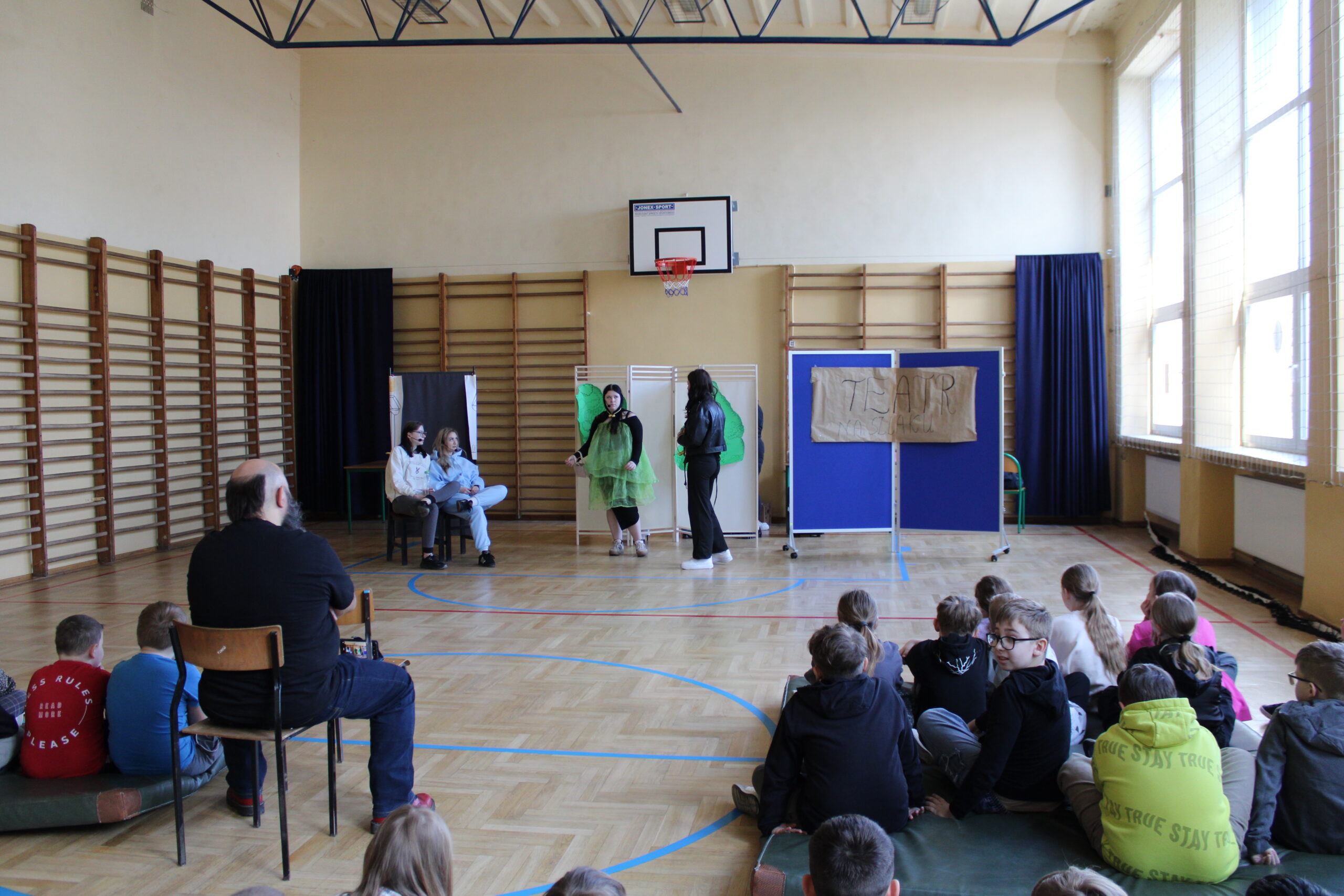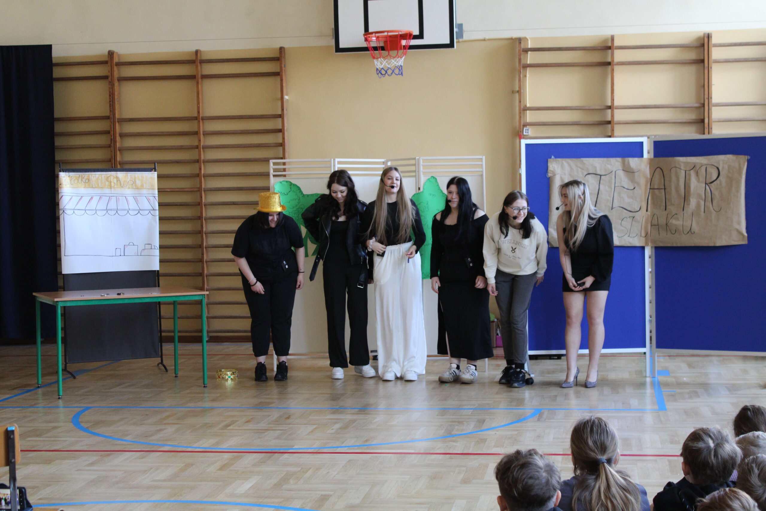 10 kwietnia 2026 r. W naszej szkole gościło koło teatralne „Teatr na Szlaku”, które tworzą wychowanki Młodzieżowego Ośrodka Wychowawczego w Załuskowie ” Dom na Szlaku” . Wychowanki przedstawiły dwie etiudy teatralne ” Kulkomania” oraz ” Nie wszystko złoto co się świeci”. Poruszają one ważne aspekty życia. Bardzo dziękujemy za kolejną wizytę dziewcząt w naszej szkole. Przedstawienia bardzo podobały się naszym dzieciom.