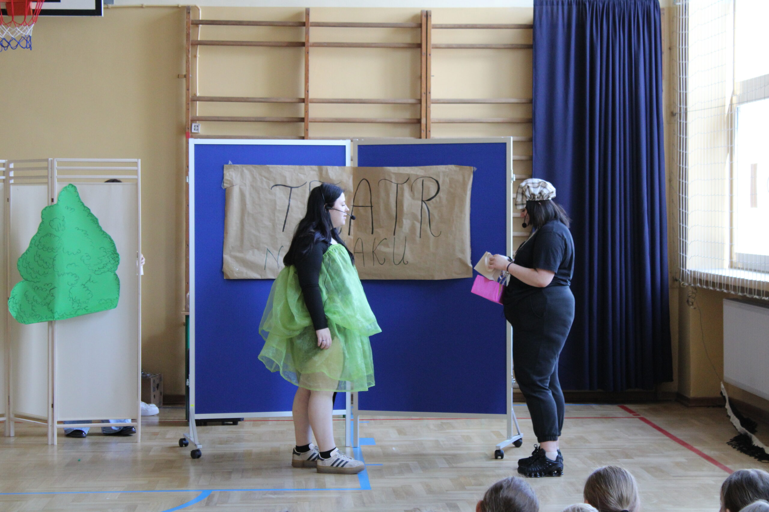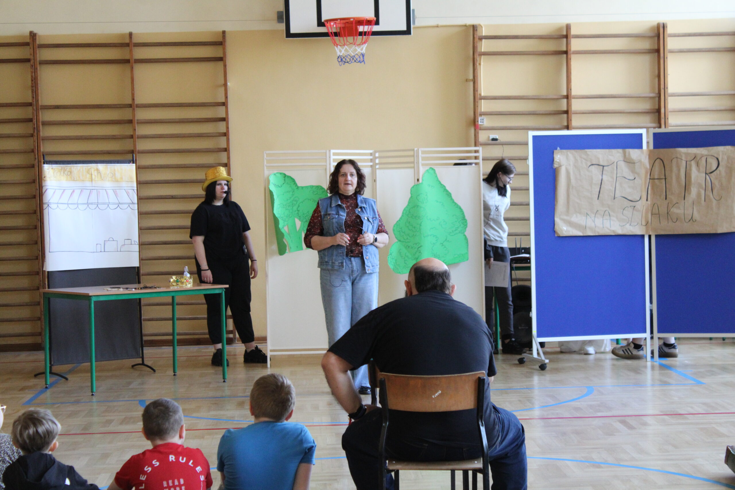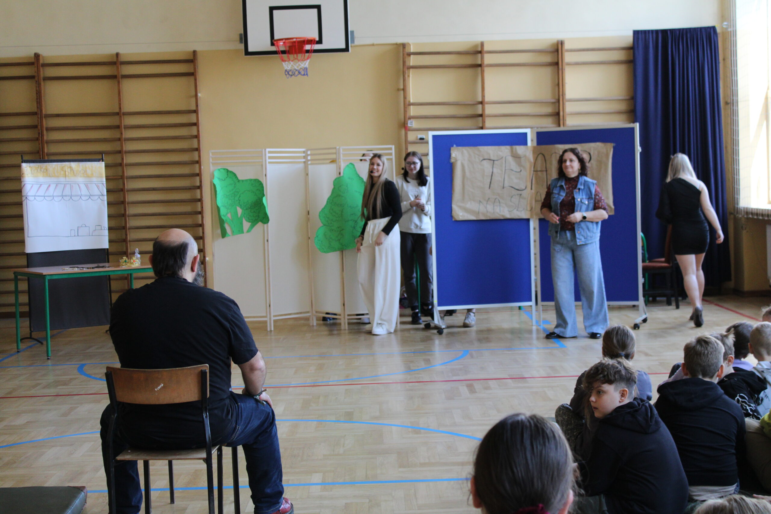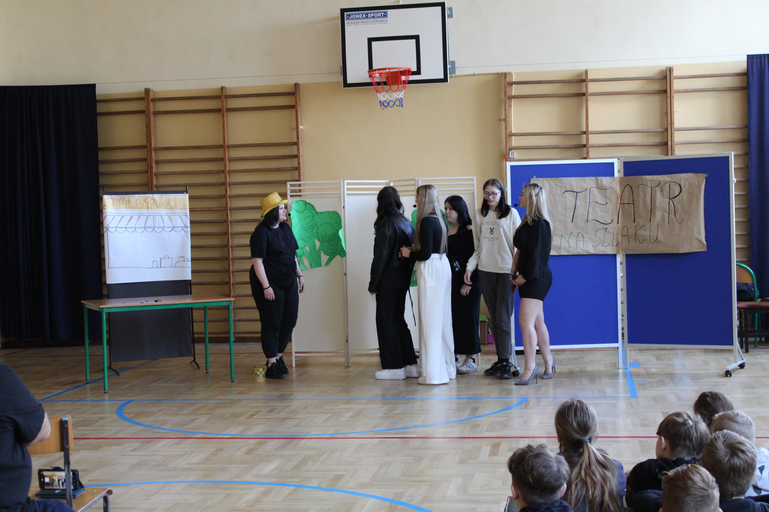 10 kwietnia 2026 r. W naszej szkole gościło koło teatralne „Teatr na Szlaku”, które tworzą wychowanki Młodzieżowego Ośrodka Wychowawczego w Załuskowie ” Dom na Szlaku” . Wychowanki przedstawiły dwie etiudy teatralne ” Kulkomania” oraz ” Nie wszystko złoto co się świeci”. Poruszają one ważne aspekty życia. Bardzo dziękujemy za kolejną wizytę dziewcząt w naszej szkole. Przedstawienia bardzo podobały się naszym dzieciom.