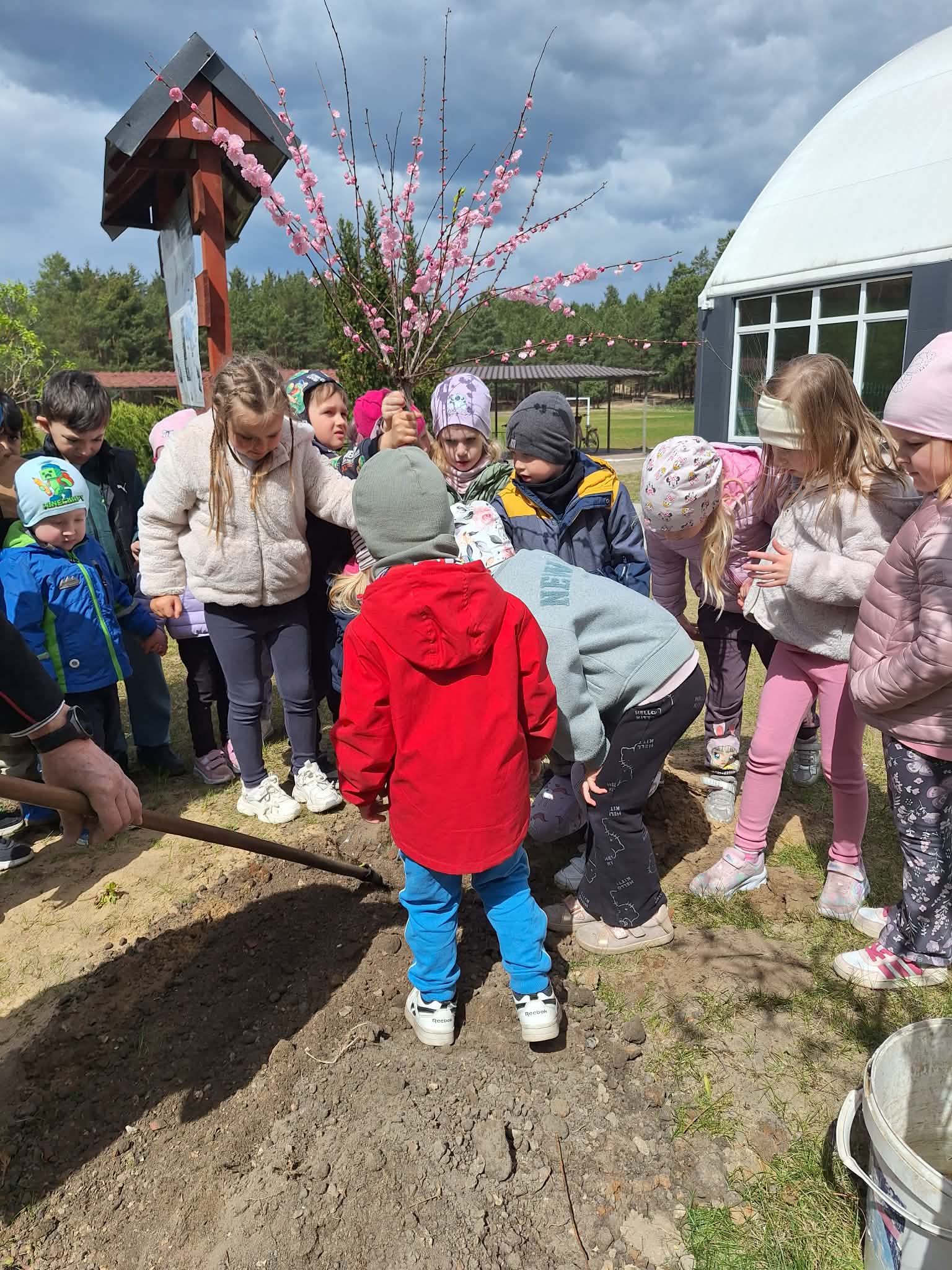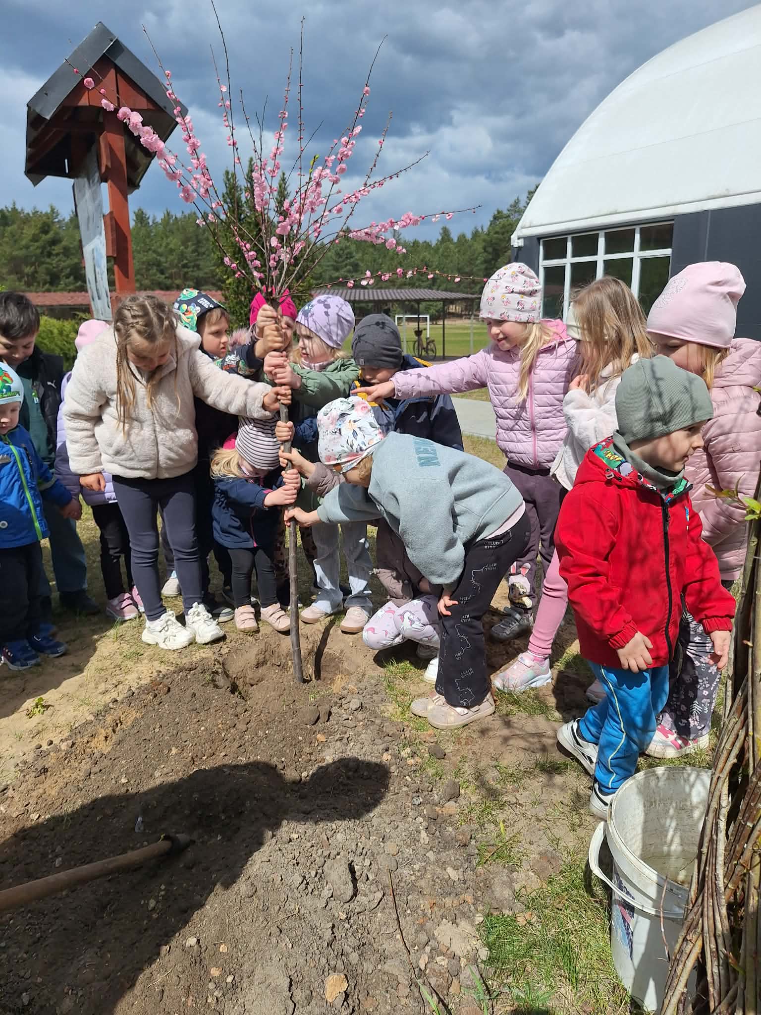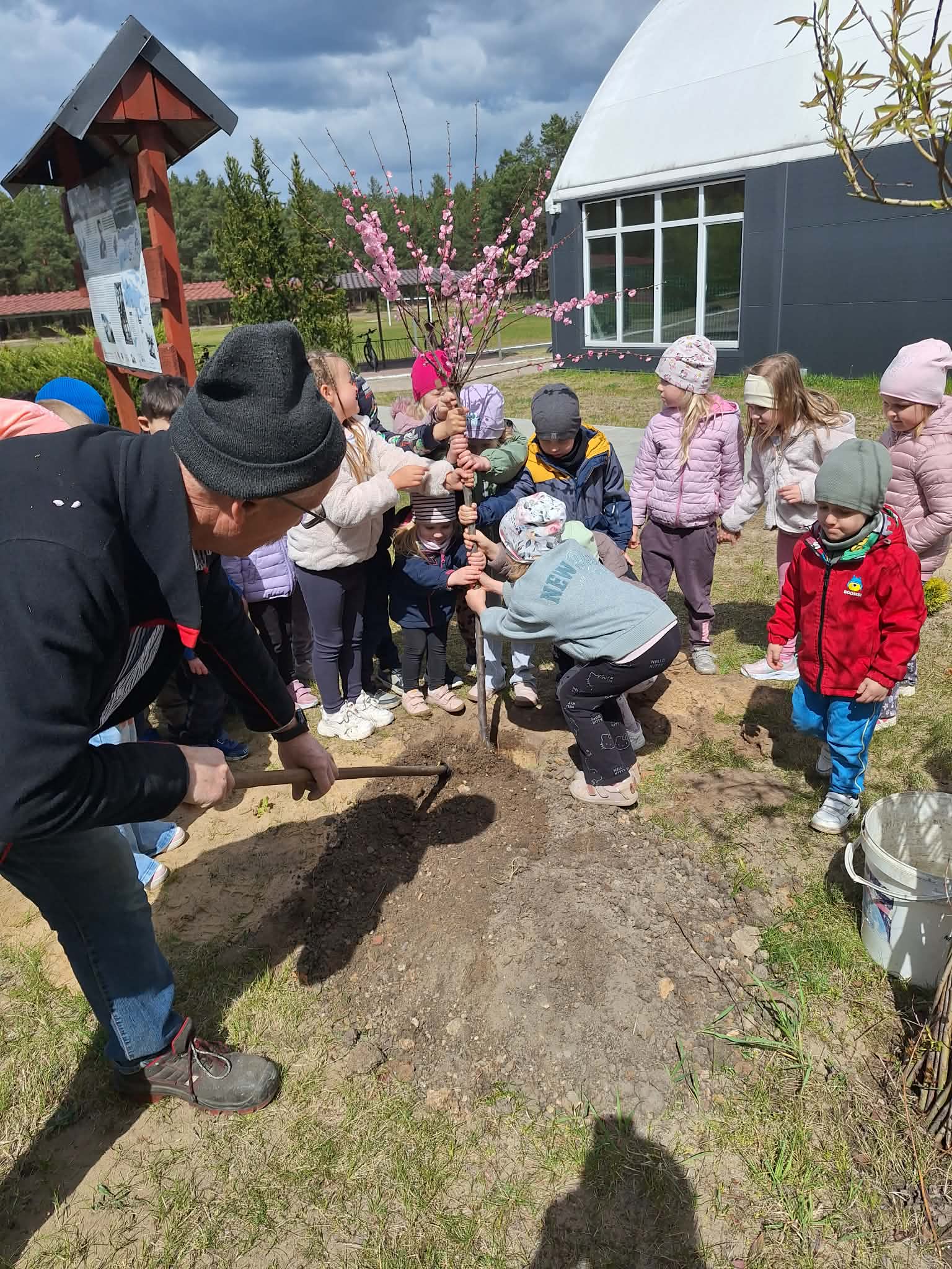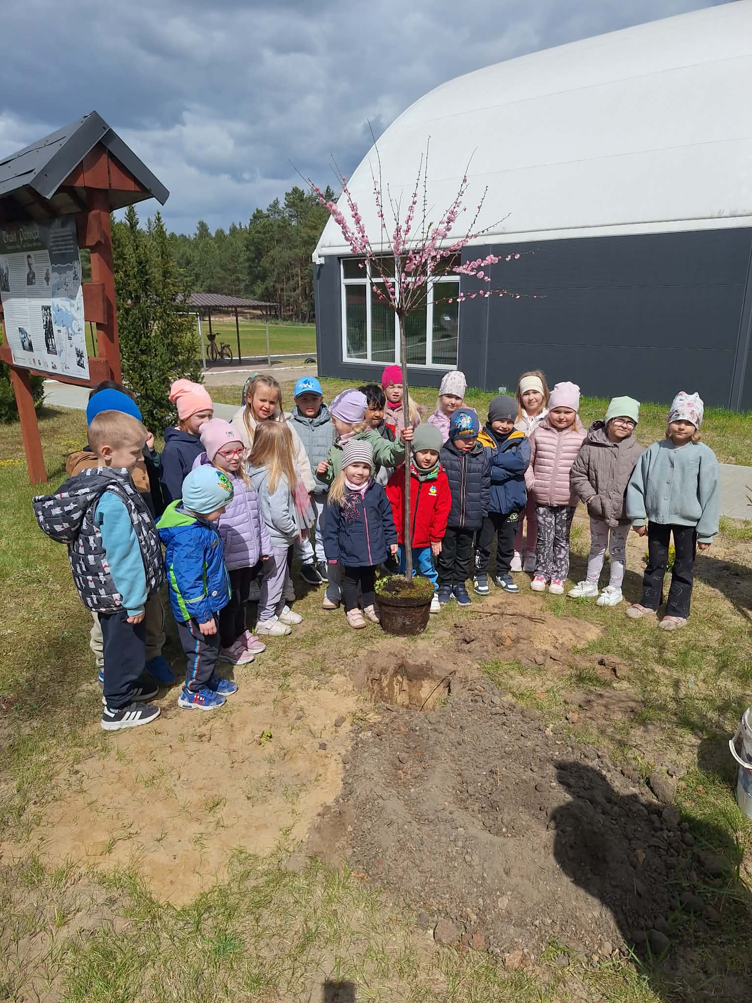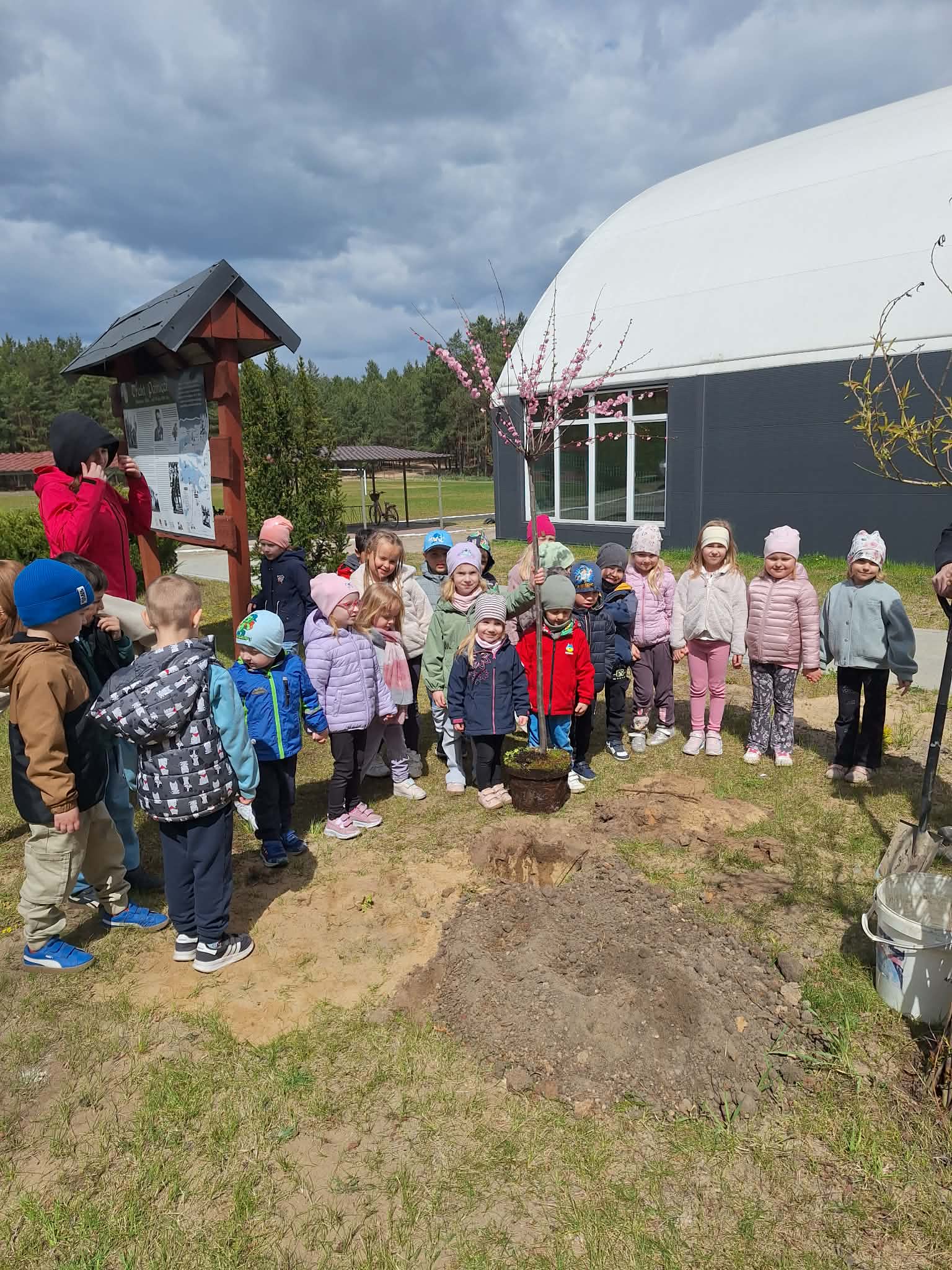 Nasze najmłodsze pociechy również miały ręce pełne roboty! Przed budynkiem szkoły przedszkolaki wspólnie zasadziły piękne, młode drzewko, które będzie rosło razem z nimi i przypominało o tym ważnym dniu.